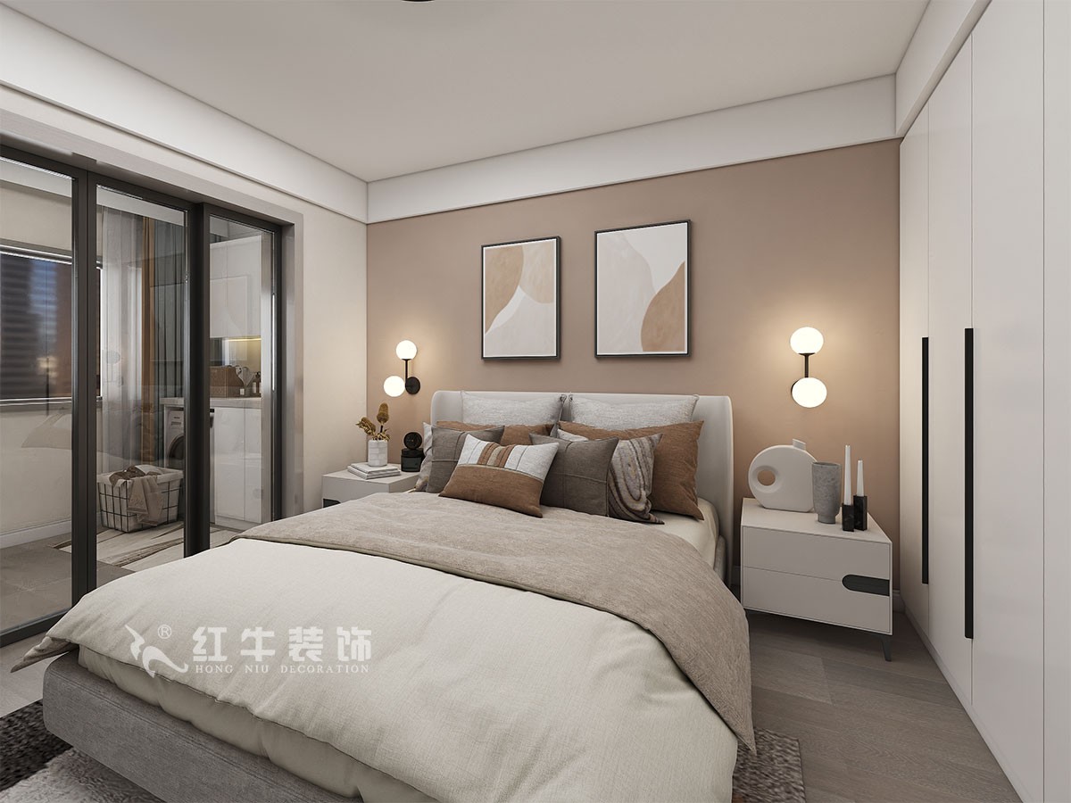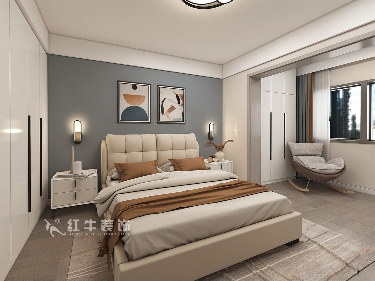 此案主要是婚房居住,在舒適度上要求比較高,臥室是整套房子中最私人也是最體現(xiàn)出溫馨休閑感的空間,在設(shè)計(jì)時(shí)體現(xiàn)出靜謐舒適的感覺,并且與其他空間明顯的區(qū)別,利用衛(wèi)生間砌墻,把電視掛墻上,把冰箱嵌入餐廳柜子,更好的布局。這樣舒適度更好,區(qū)域劃分明顯,動(dòng)靜分離。吊頂簡(jiǎn)潔大氣,配以輕現(xiàn)代家具,完美闡釋了簡(jiǎn)約風(fēng)格。整體現(xiàn)代簡(jiǎn)約風(fēng)格的設(shè)計(jì),搭配上顯眼的綠色植物讓整個(gè)空間呈現(xiàn)出一種生機(jī)勃勃的自然美。