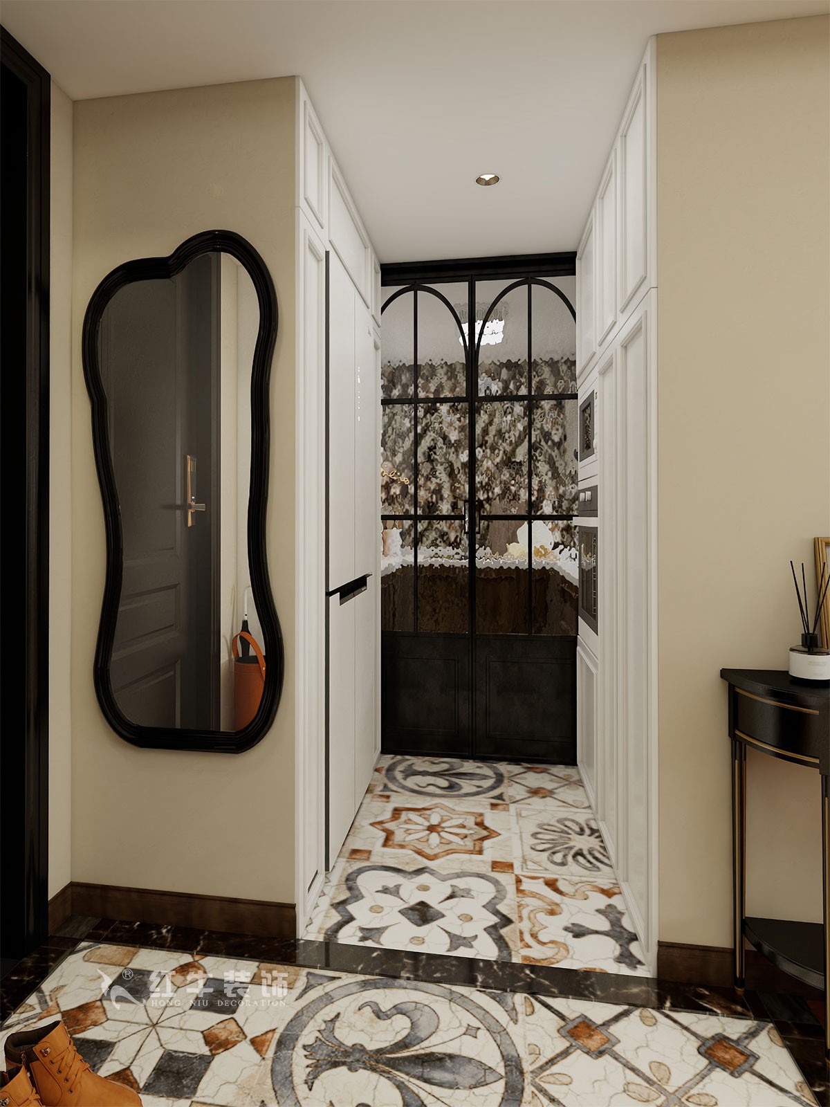 電視機(jī)+支架,絕配!實(shí)現(xiàn)不同場景全方位地看電視!側(cè)邊定制黑胡桃木書柜,嵌入墻體,客廳更顯大。這個法式復(fù)古和南洋風(fēng)也太搭了!墨綠色的法式復(fù)古風(fēng)配上黑胡桃木元素的點(diǎn)綴,像把文藝復(fù)興的浪漫搬進(jìn)家,這樣的家也太高級了!進(jìn)門復(fù)古花磚+墨綠乳膠漆,南洋氛圍拉滿。側(cè)邊做掛鉤,可以隨手掛放包包。