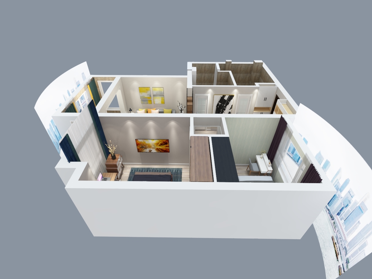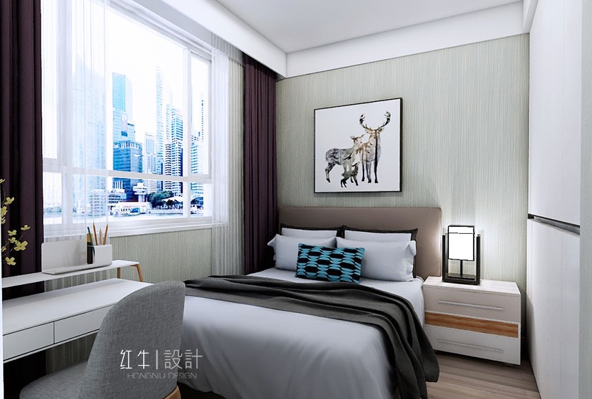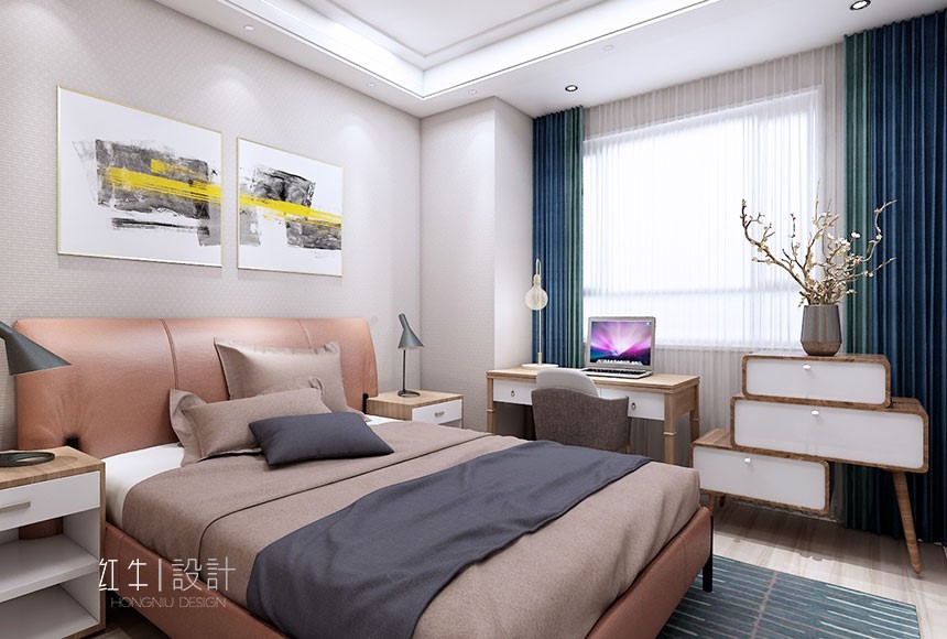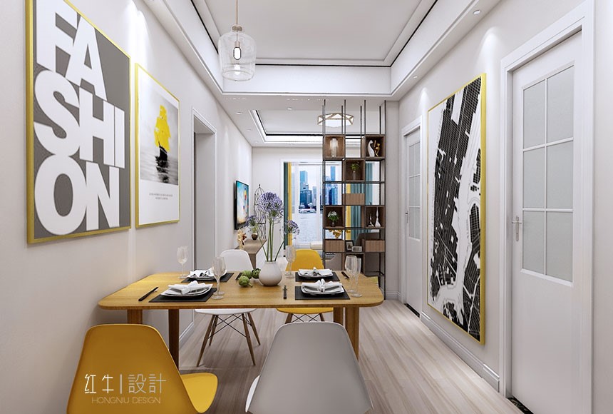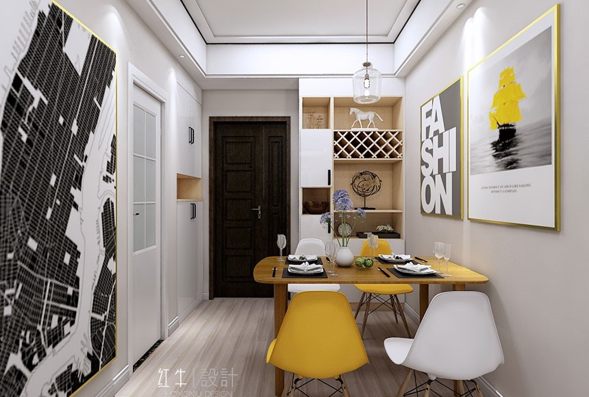 現(xiàn)代人的生活習(xí)性,喜歡簡單明了不拖泥帶水的東西,都市的快節(jié)奏,讓人們希望在房子里找到家的溫馨。客廳淺灰色的墻面讓人有安靜下來的體驗,木色的家具,加以搭配撞色的門板,不會有原始的呆板。木色的家具配以時尚的撞色,大膽又不失規(guī)矩,甚是合適。大量的留白,使空間更加時尚和安靜。房間木色的拼色和皮質(zhì)的碰撞,配以稍深的墻紙,溫暖又清新,讓主人能在疲憊一天的工作中,舒服的進入夢鄉(xiāng)。次臥朝北,運用淺綠色的墻面,將空間帶進自然,