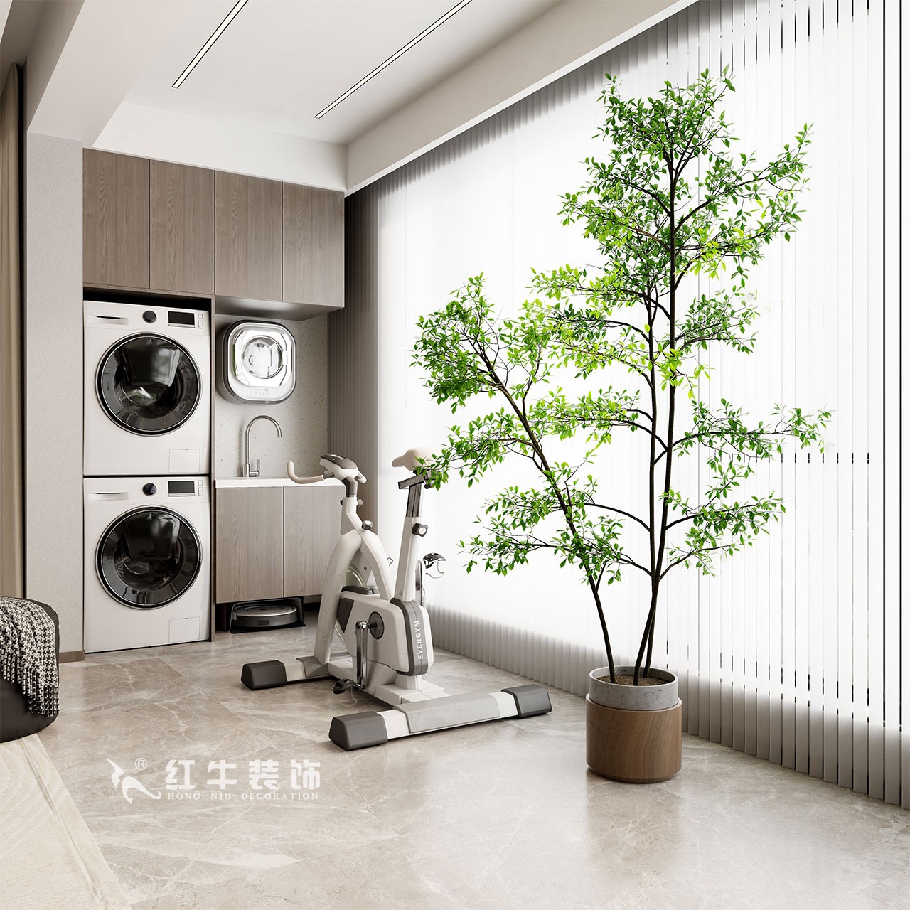 多功能大陽臺,滿足業(yè)主洗曬、儲物、學(xué)習(xí)辦公、鍛煉等不同需求,搭配一個生機(jī)勃勃的綠植,為整體空間注入活力。