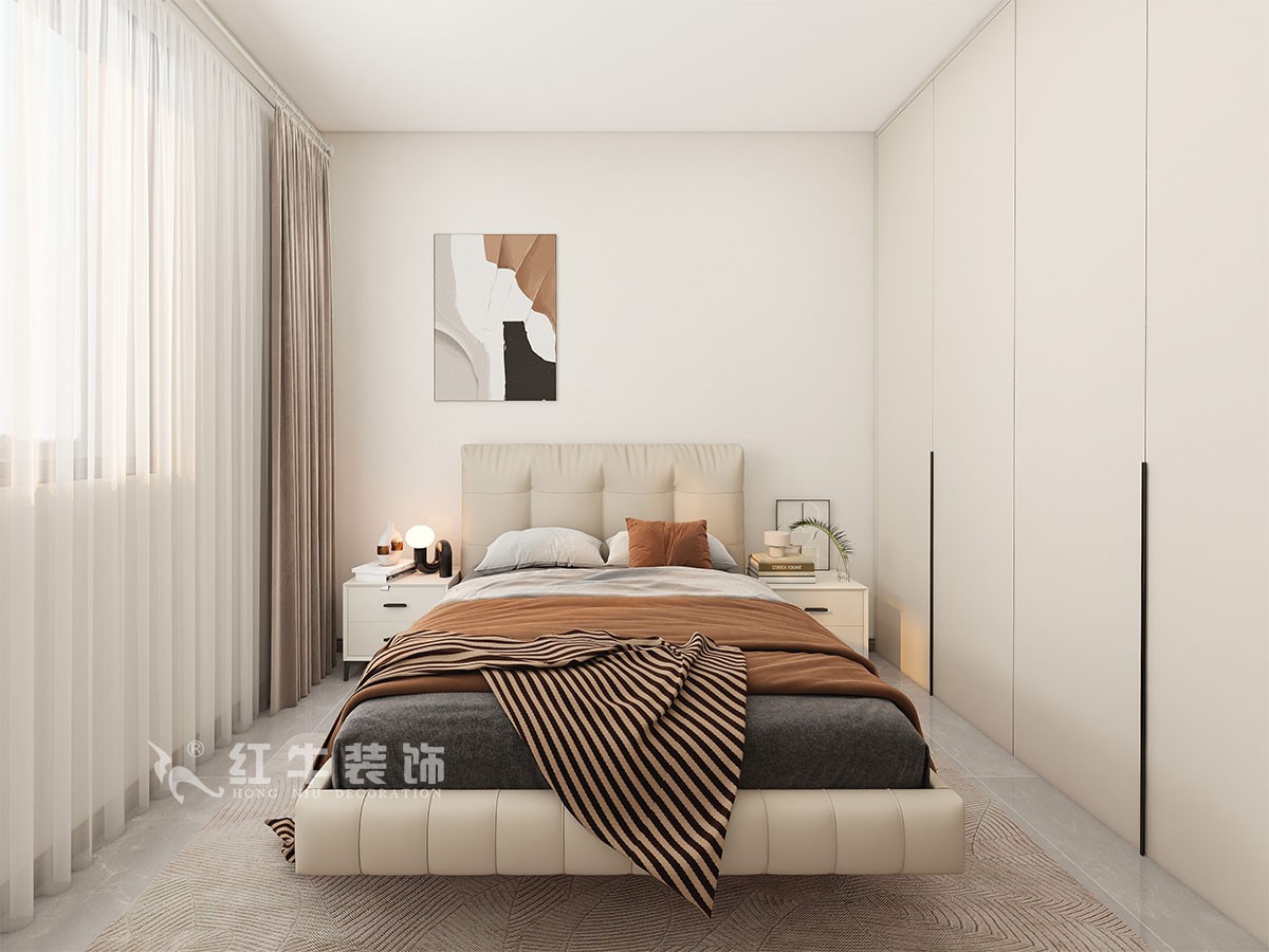 此案主要是改善裝修,在舒適度上要求比較高,臥室是整套房子中最私人也是最體現(xiàn)出溫馨休閑感的空間,在設(shè)計(jì)時(shí)體現(xiàn)出靜謐舒適的感覺,并且與其他空間有明顯的區(qū)別。