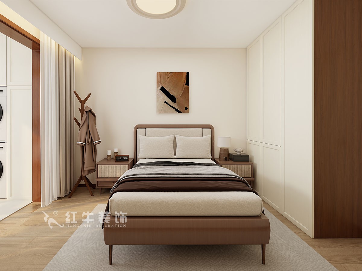 整體裝修簡潔明快,沒有過多的裝飾,增加了入戶的儲(chǔ)藏柜,小臥室以儲(chǔ)藏功能為主,兼顧了客房功能。