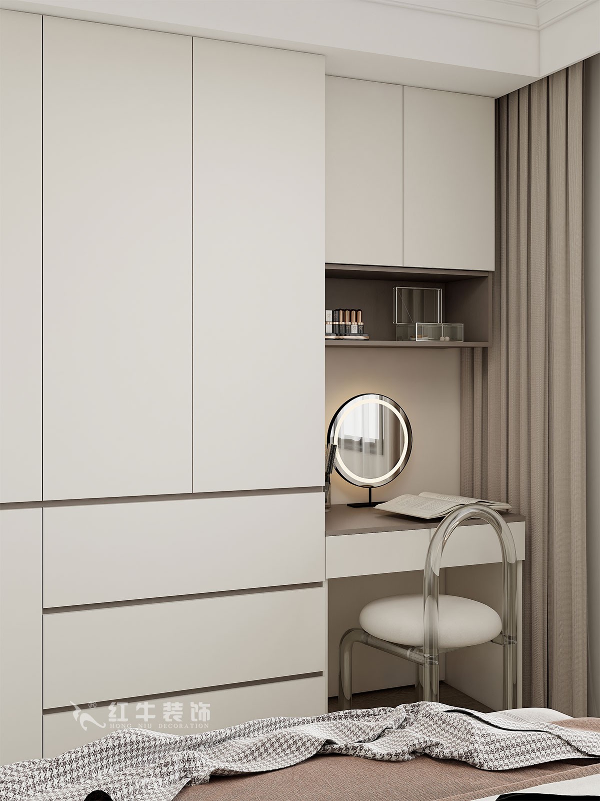 臥室說(shuō)明:搭配大面積的白色定制衣柜,床頭的光源以不同形勢(shì)呈現(xiàn),既滿足不同燈光需求,又恰到好處地起到了裝飾效果,使整體臥室空間呈現(xiàn)明亮、溫柔的舒適狀態(tài)。