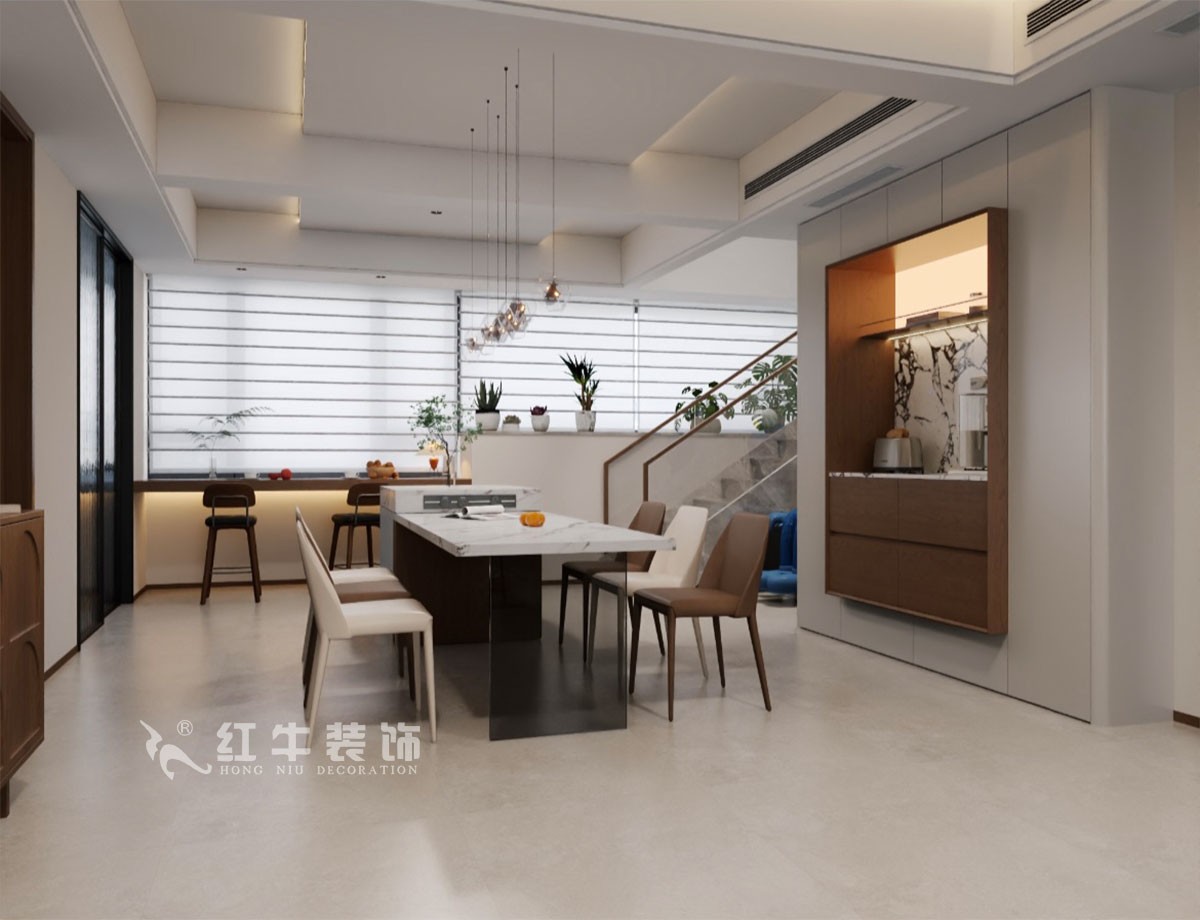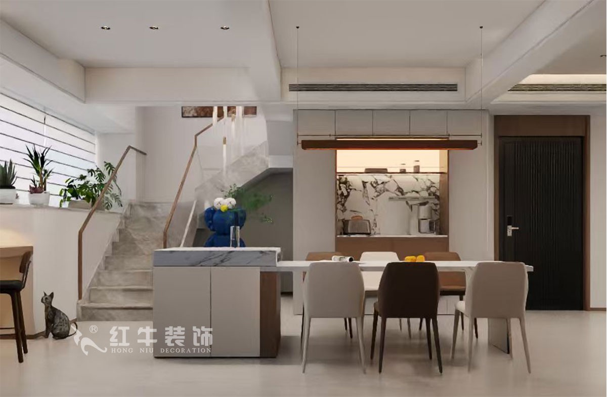 本方案一樓樓梯區(qū)域優(yōu)化改造,重新規(guī)劃樓梯位置,有效擴(kuò)容廚房操作與餐廳活動(dòng)面積,讓進(jìn)門視野豁然開朗,整體格局更顯通透舒展,契合空間高效利用的設(shè)計(jì)需求。