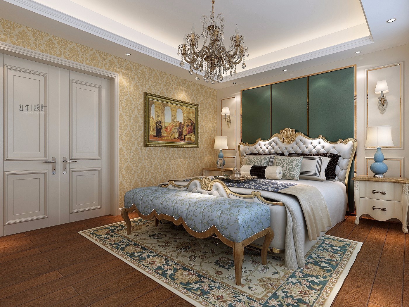 床尾凳的設(shè)計,可以從細(xì)節(jié)上提升臥房品質(zhì),日??勺鲹Q鞋與聊天座位之用。對稱的雙開門,讓房間看起來大氣許多。