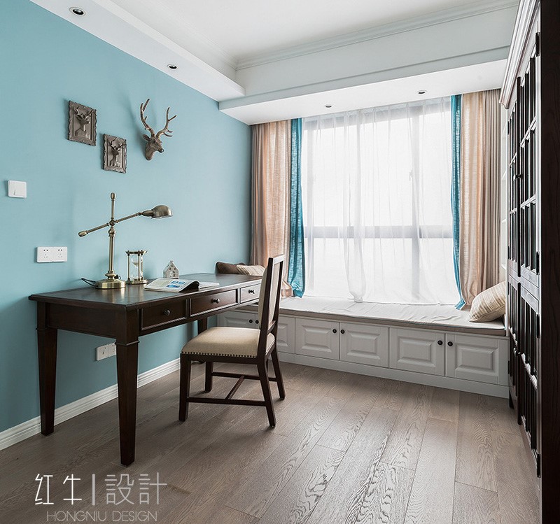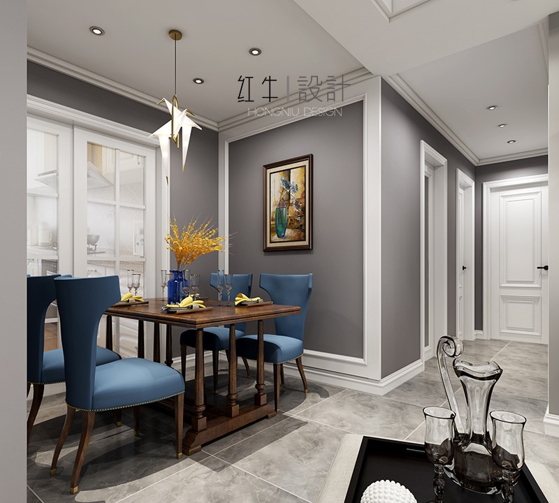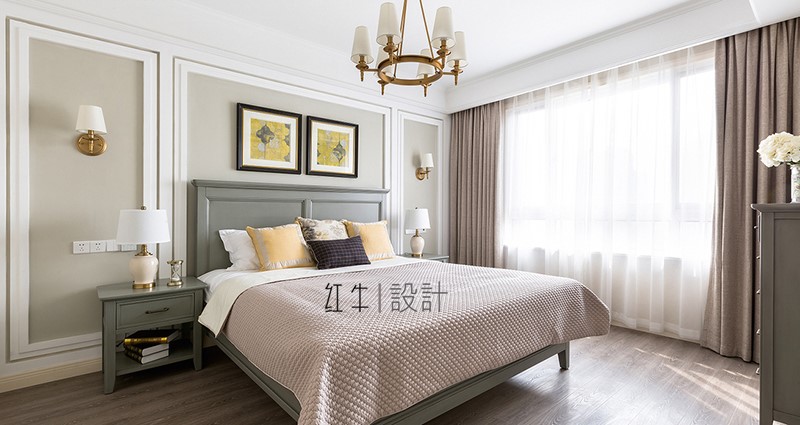 客餐廳色調(diào)清雅,休閑、隨性又不失精致,電視背景墻沒有過多的華麗修飾,給空間本身一個開拓、延展性,給居住者一個慵懶、明快的起居環(huán)境。主臥次臥,依靠美式家具本身的線條感,搭配同樣風格的裝飾畫,給人以休閑自在的視覺感受,心情也自然就舒緩很多。