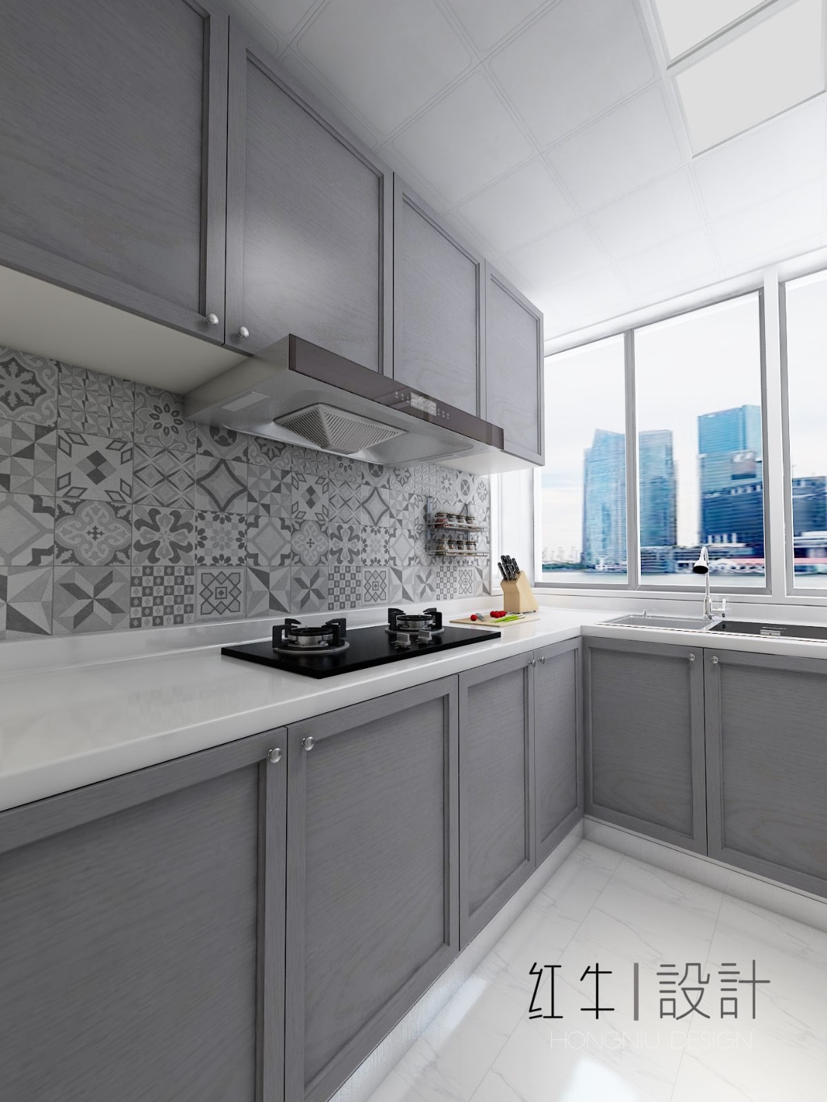 頂柜與底柜之間的墻面上,貼上同一風格、不同花紋的瓷磚,輕松打造出視覺焦點,讓這小小的廚房一秒鐘變身文藝范。