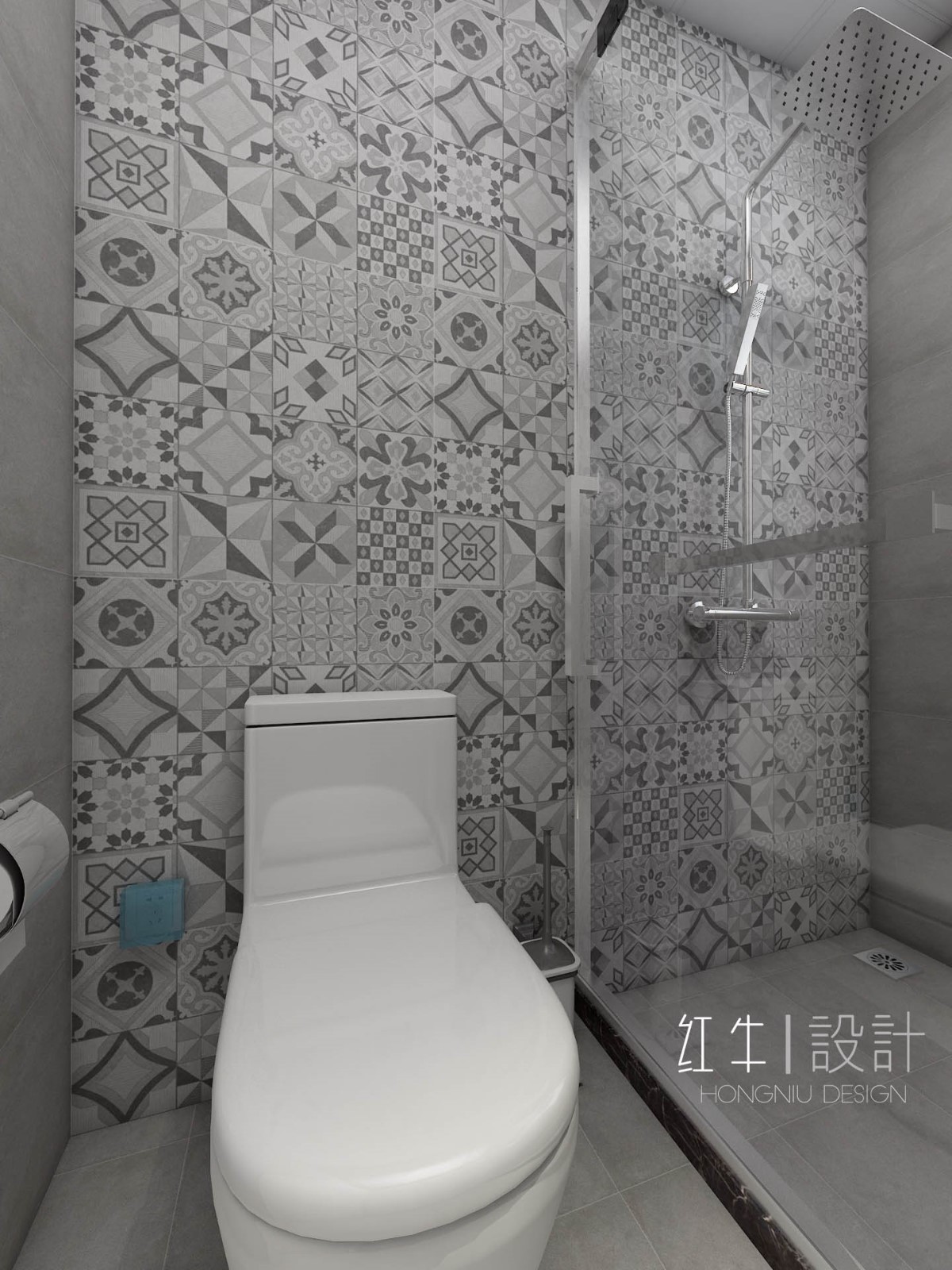 衛(wèi)生間整體看上去簡潔利落,為了不使空間太單調(diào),一面墻被鋪上了花紋瓷磚,很好地裝點了空間。