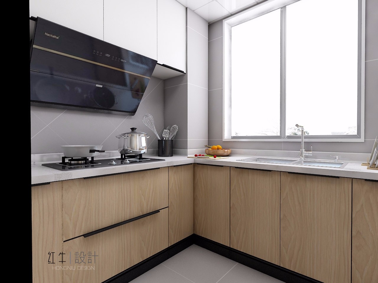 推開玻璃門,便可進(jìn)入廚房。油煙機(jī)“隱蔽”于櫥柜內(nèi),顯得整齊有秩序。