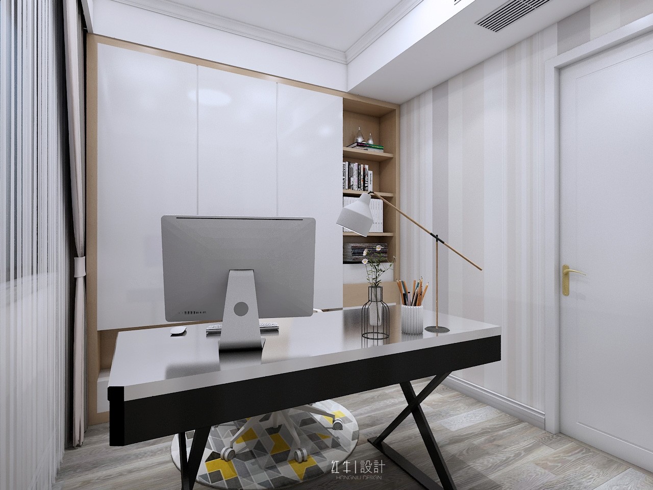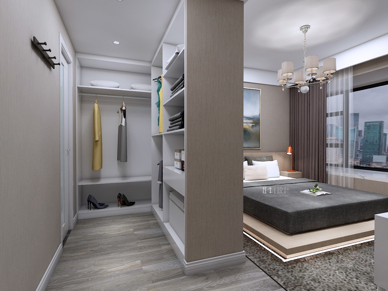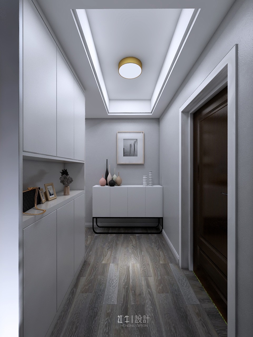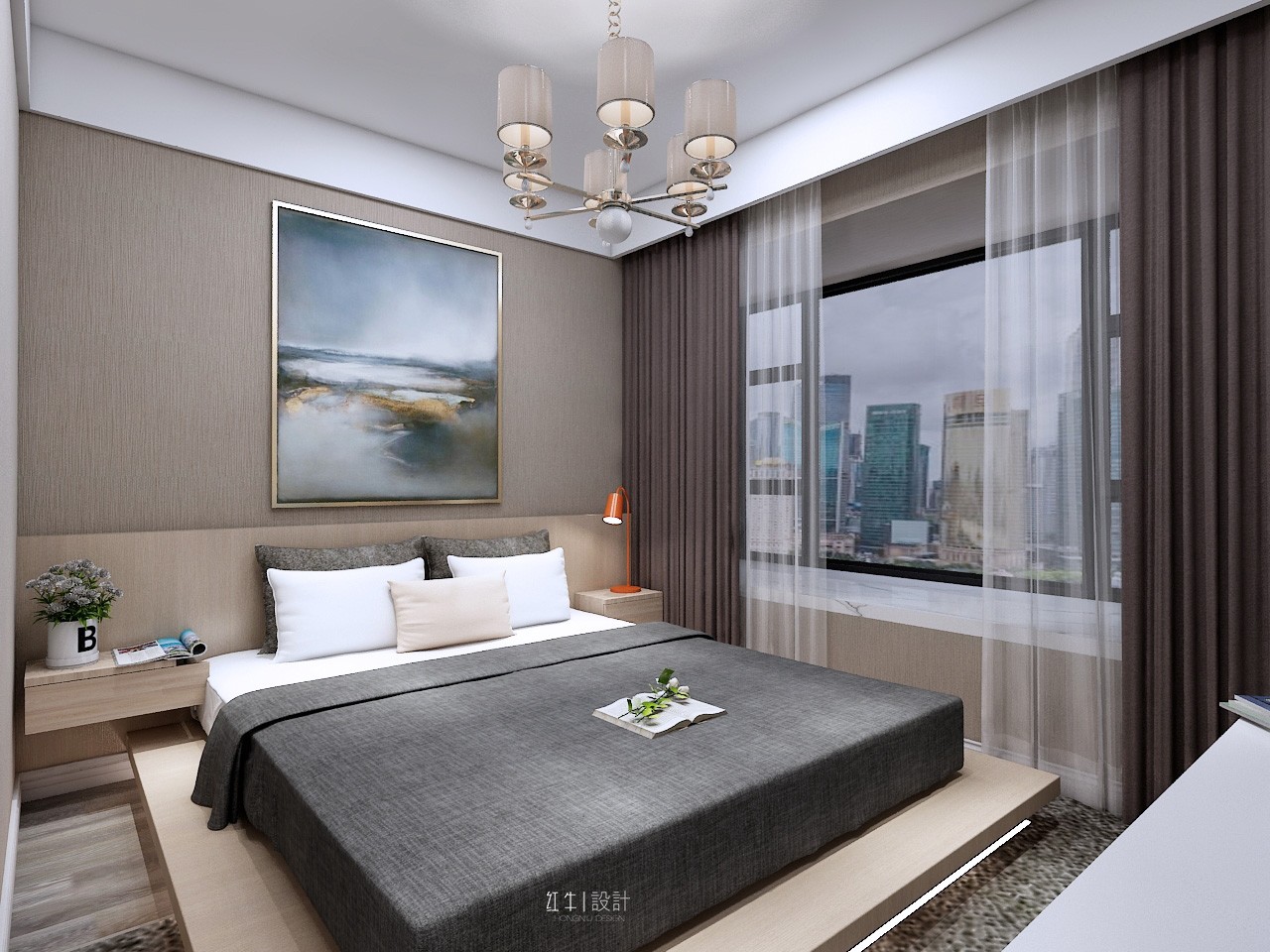 本案的設(shè)計風(fēng)格為現(xiàn)代風(fēng)格,以灰色為主色調(diào),以淺色為主深色為輔。營造清新、溫馨浪漫的氛圍。