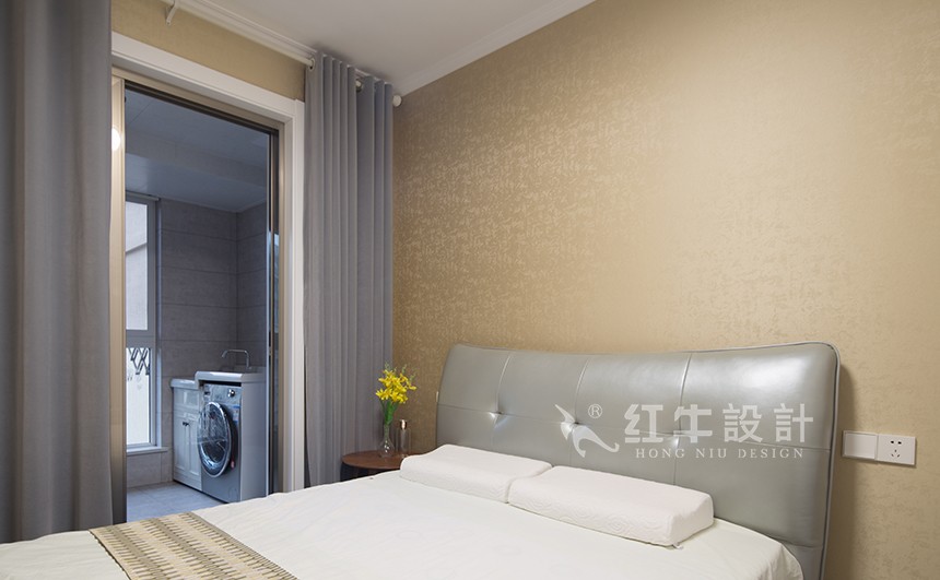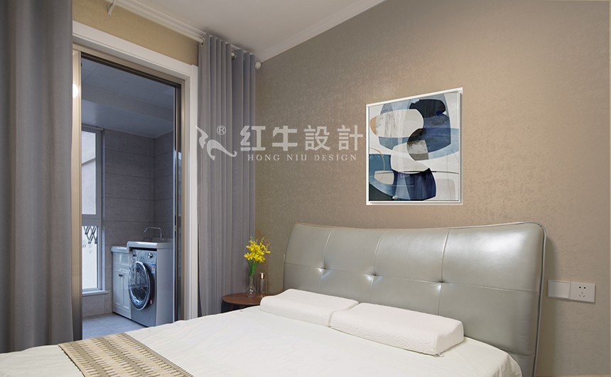 墻面色調(diào)莊重而不失雅致,給人以沉穩(wěn)、懷舊的感覺(jué)。同時(shí)選用了灰色的窗簾,白色的床品與之搭配,整體環(huán)境充滿(mǎn)了和諧與美感。