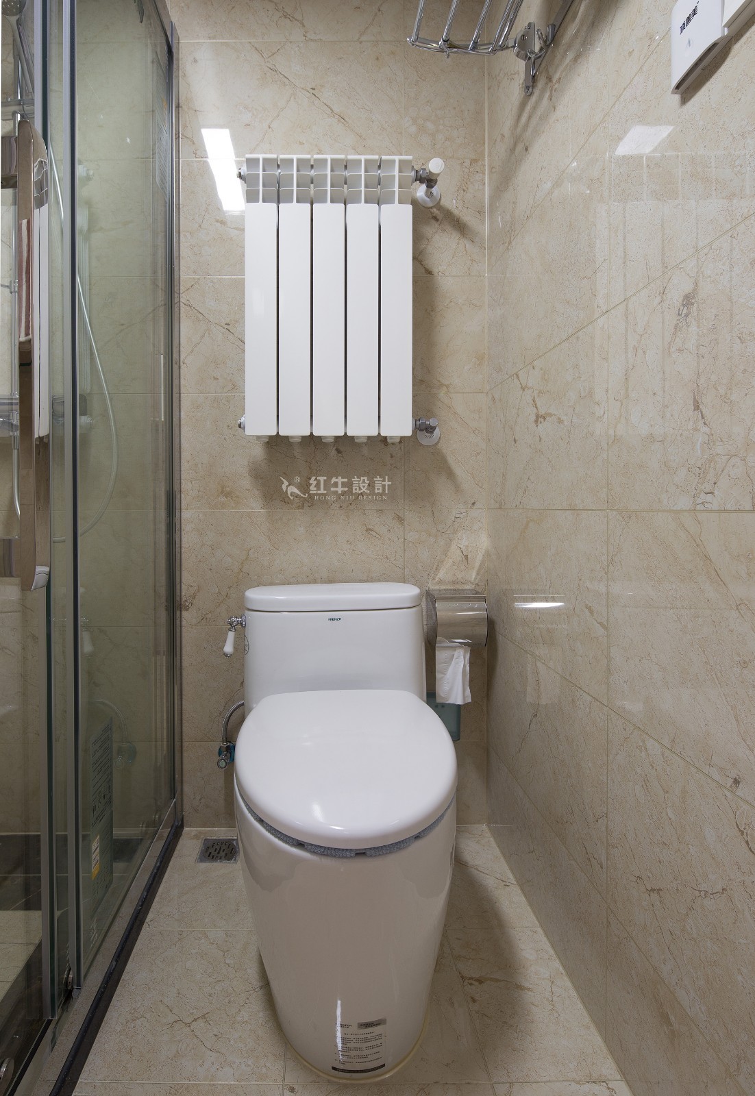 洗手臺(tái)被分離在外,提高了衛(wèi)生間的使用效率。衛(wèi)浴部分非常簡潔,以實(shí)用和功能性為主。
