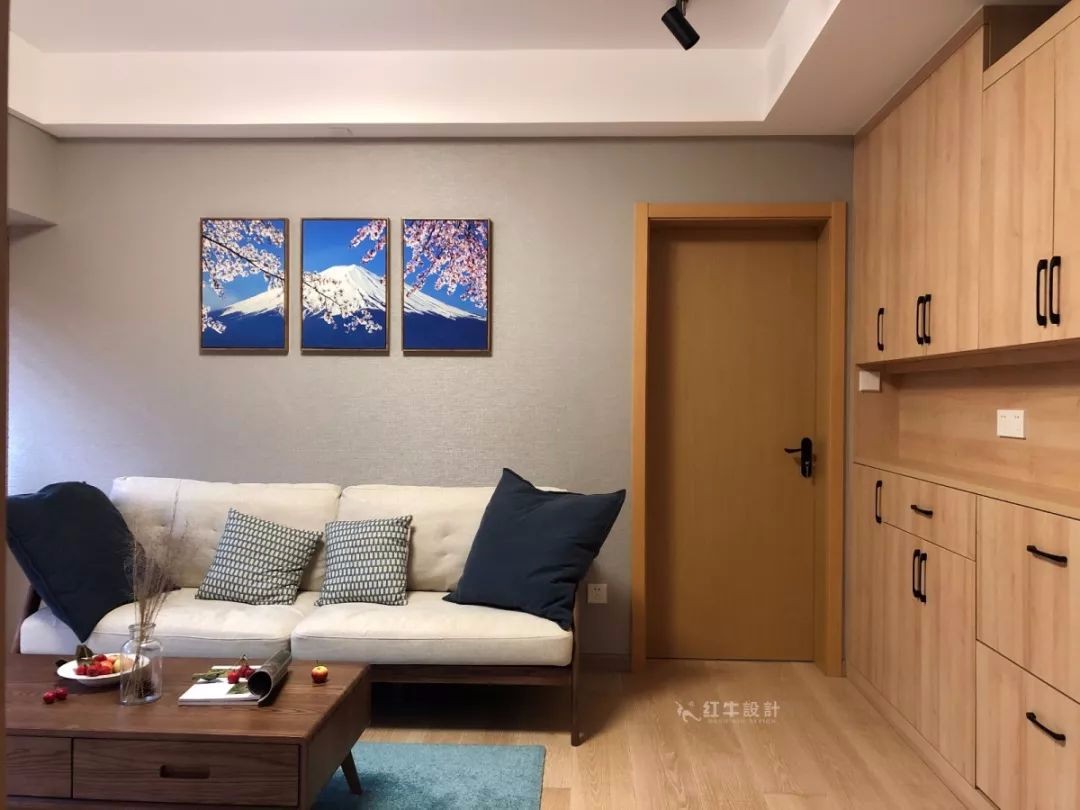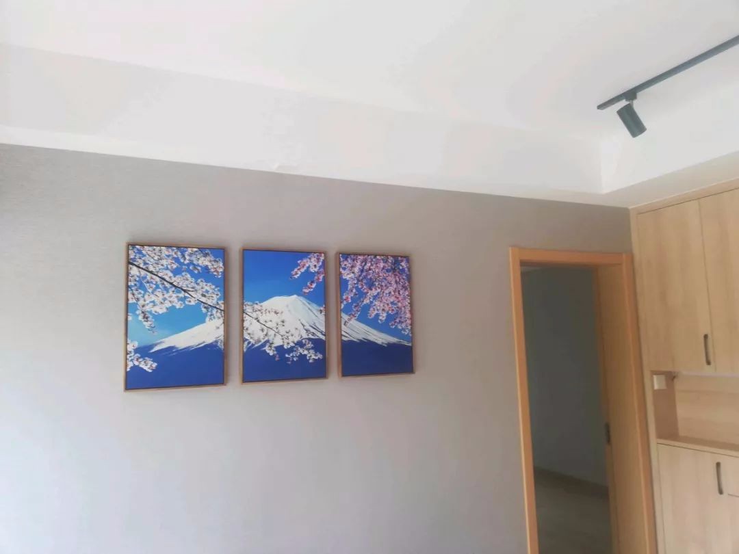 客廳的三聯(lián)裝飾畫構(gòu)成一個完整的富士山圖景,極具日式風(fēng)情。
