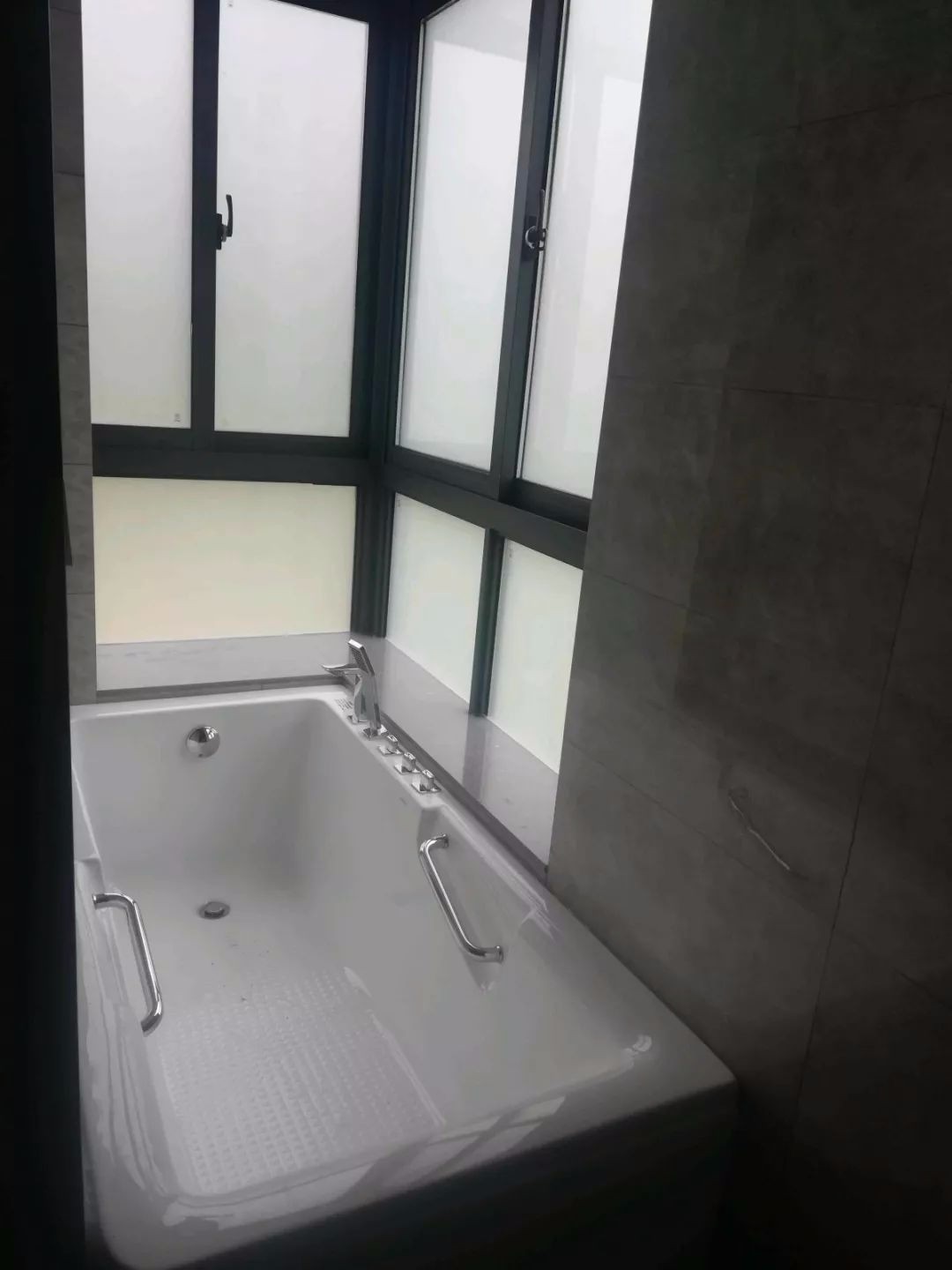 灰色系的衛(wèi)生間具有優(yōu)雅質(zhì)感,衛(wèi)生間一角還放置了浴缸,工作一天之后可以盡情享受泡澡的放松時光。