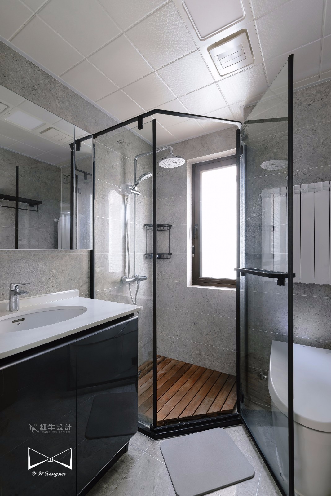 黑色邊框在視覺(jué)上更具層次感,淋浴間內(nèi)安裝了防腐木板,既賞心悅目又實(shí)用。