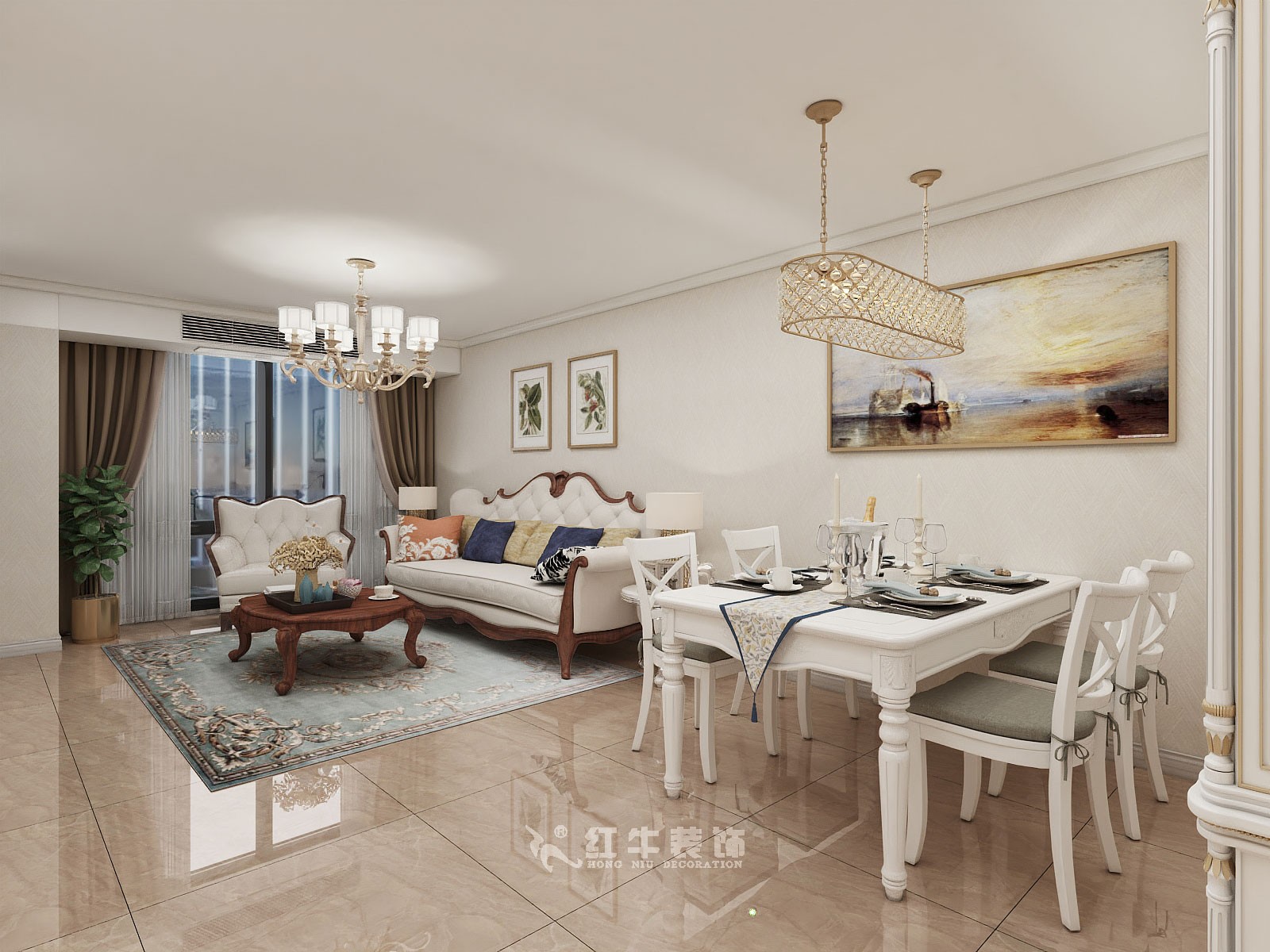 本案定義為簡歐風格,家具以簡歐元素,增加空間層次感和質感。