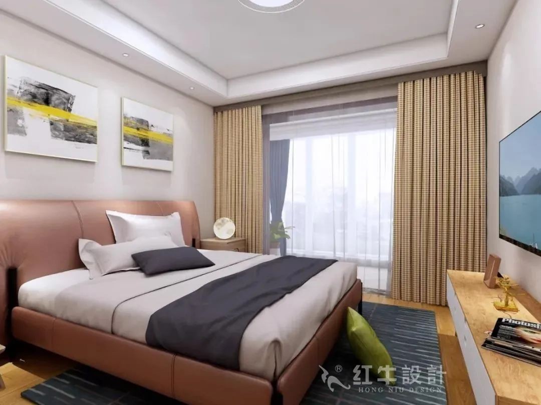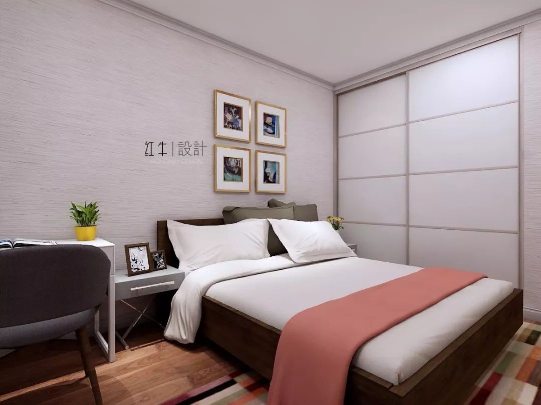 臥室主打暖色調(diào),布置較為溫馨舒適。