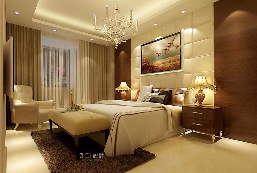 客餐廳色調(diào)清雅,休閑、隨性又不失精致,電視背景墻沒有過多的華麗修飾,給空間本身一個開拓、延展性,給居住者一個慵懶、明快的起居環(huán)境。主臥次臥,依靠美式家具本身的線條感,搭配同樣風格的裝飾畫,給人以休閑自在的視覺感受。書房是辦公空間,設計者在整面墻留畫,一條小路通向遠方,給了本就不大的空間一個視覺的開放性,心情也自然就舒緩很多。