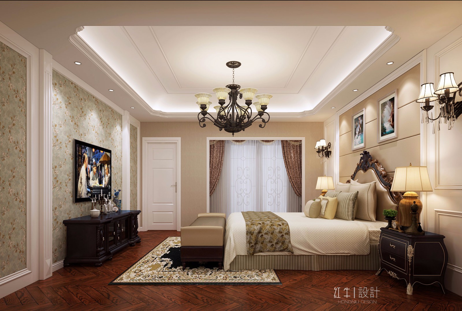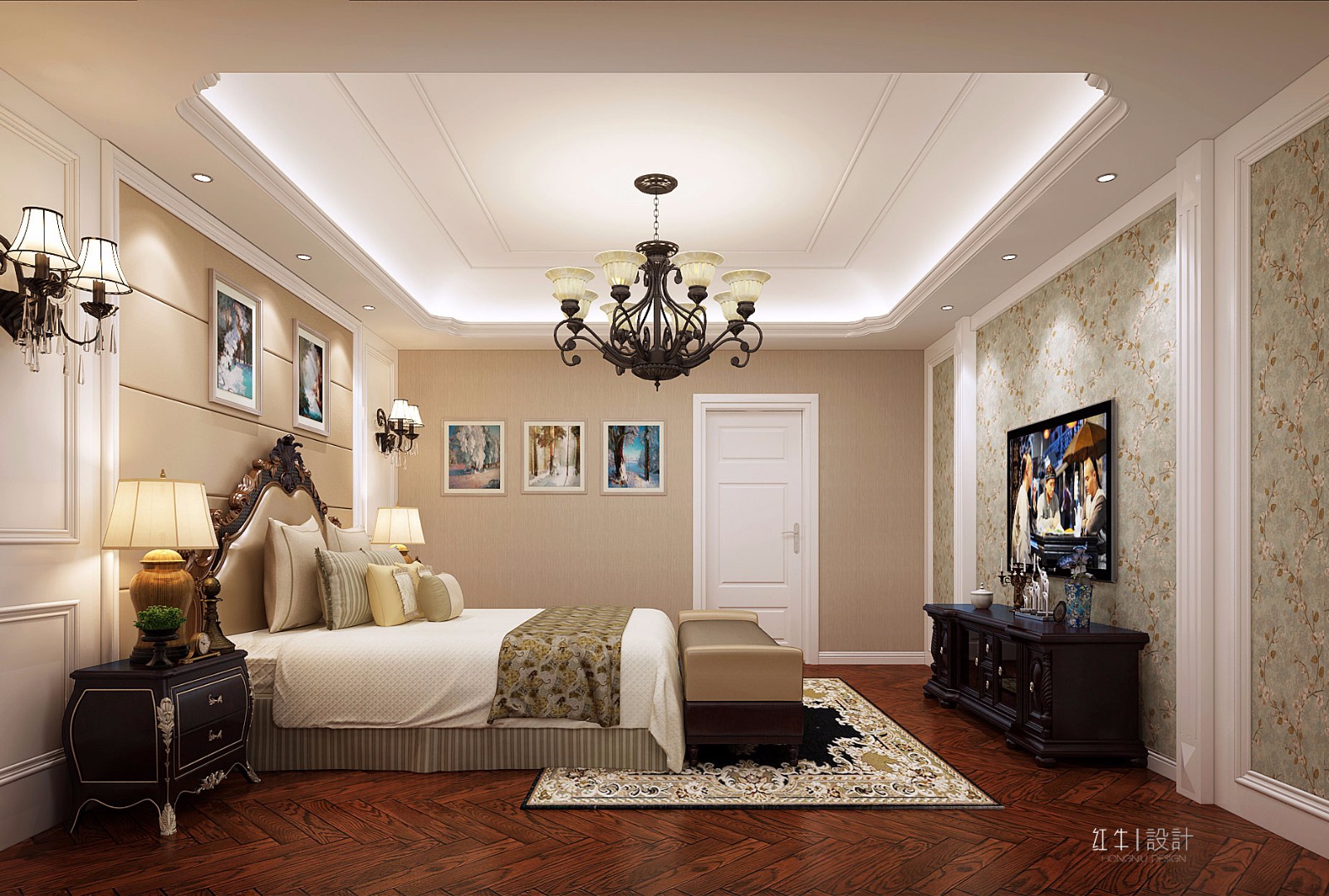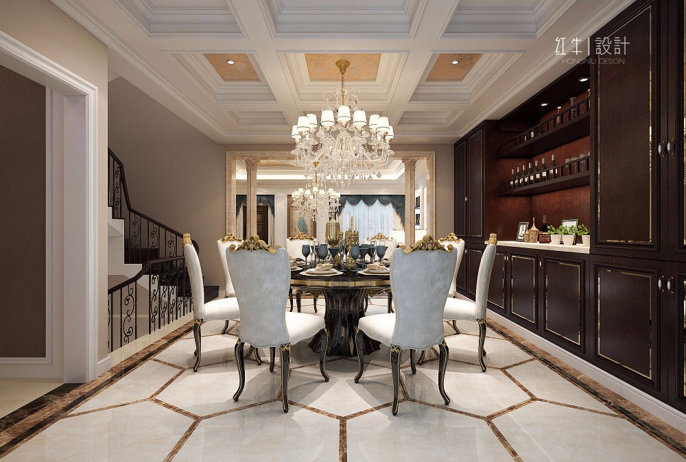 本案的設(shè)計(jì)從簡(jiǎn)單到復(fù)雜、從整體到局部,精雕細(xì)琢、鑲花刻銀,都給人一絲不茍的印象。一方面保留了材質(zhì)、色彩的自然風(fēng)格,讓人感受到傳統(tǒng)的歷史痕跡與渾厚的文化底蘊(yùn)。同時(shí)又摒棄了過(guò)于復(fù)雜的肌理和裝飾,簡(jiǎn)化了線條。將懷舊的浪漫情懷與現(xiàn)代人對(duì)生活的需求相結(jié)合,兼具華貴典雅與時(shí)尚現(xiàn)代。