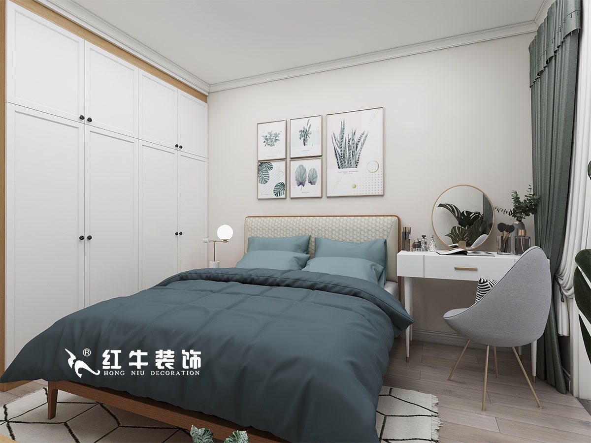 整體現(xiàn)代北歐風(fēng)格的設(shè)計(jì),素雅的多人沙發(fā),客廳在功能方面是會(huì)客休閑,整體的客廳設(shè)計(jì)象征著主人品位。深色地毯的搭配讓整個(gè)客廳在開(kāi)放式中似乎又與餐廳相區(qū)別開(kāi)來(lái)。簡(jiǎn)約大方的地板設(shè)計(jì),正方體似的的長(zhǎng)桌簡(jiǎn)約而時(shí)尚。搭配上顯眼的綠色植物讓整個(gè)客廳呈現(xiàn)出一種生機(jī)勃勃的自然美。臥室是整套房子中最私人也是最體現(xiàn)出溫馨休閑感的空間,一般在設(shè)計(jì)時(shí)要體現(xiàn)出靜謐舒適的感覺(jué),并且與其他空間明顯的區(qū)別。在設(shè)計(jì)時(shí)一般會(huì)根據(jù)主人的個(gè)性要求去設(shè)計(jì)。在這套方案效果中,臥室以白色這種淡然明亮的色調(diào)出現(xiàn),它的整個(gè)面積并不大,由于臥室的核心設(shè)計(jì)是床與衣柜,所以除了擺設(shè)這簡(jiǎn)約的雙人床和臥室必備的衣柜、以外,沒(méi)有再過(guò)多的放置其它物品。整個(gè)臥室呈現(xiàn)出一種淡靜的清新感,簡(jiǎn)約而素雅。