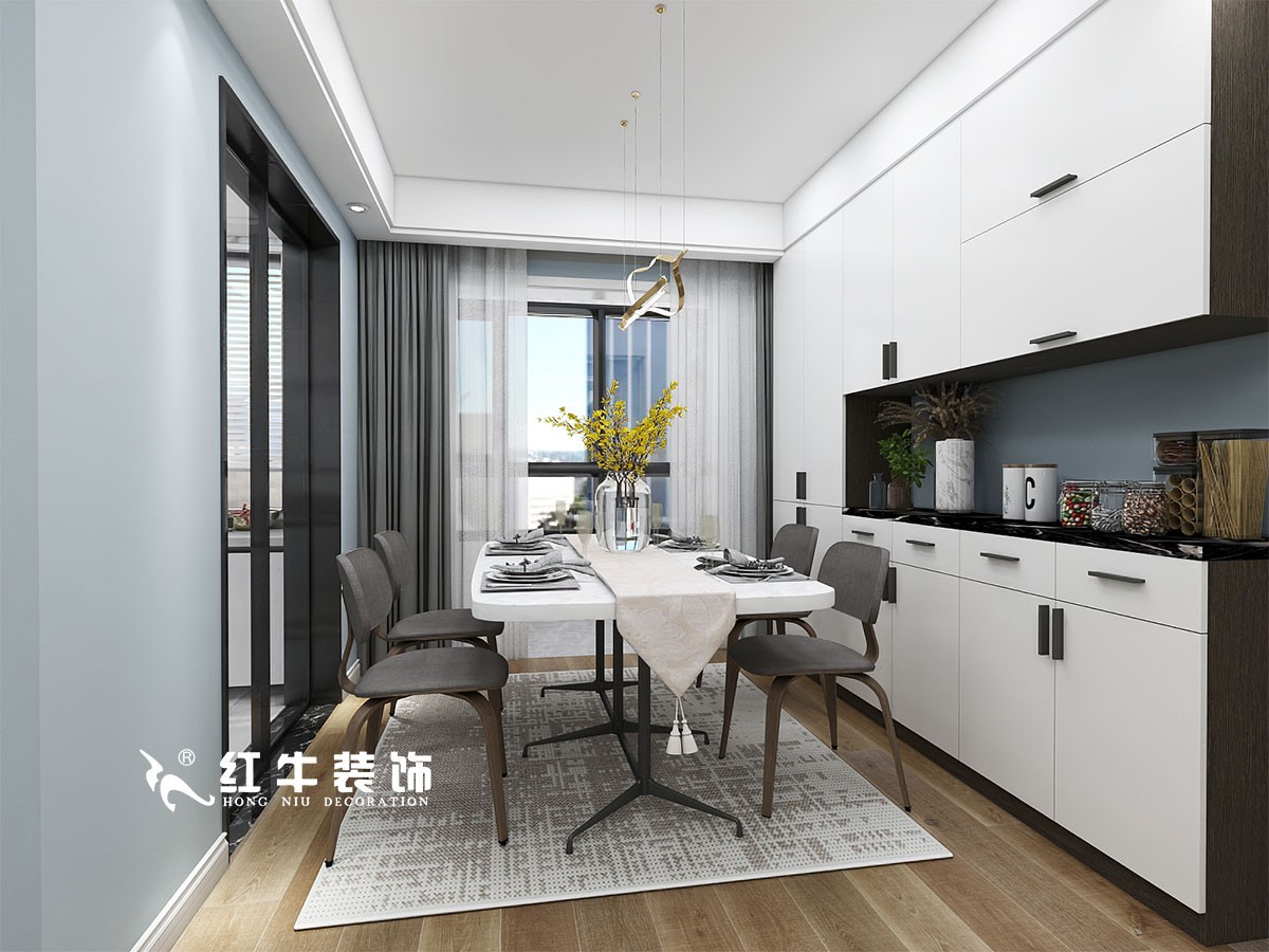 整墻餐邊柜,白色柜面,簡(jiǎn)潔又顯高級(jí),極大地滿足了收納需求。