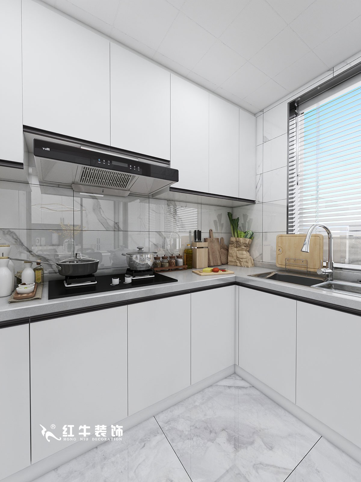 窗戶下方做水槽,水槽和灶臺(tái)的中間作為操作臺(tái),洗切炒的動(dòng)線非常流暢。