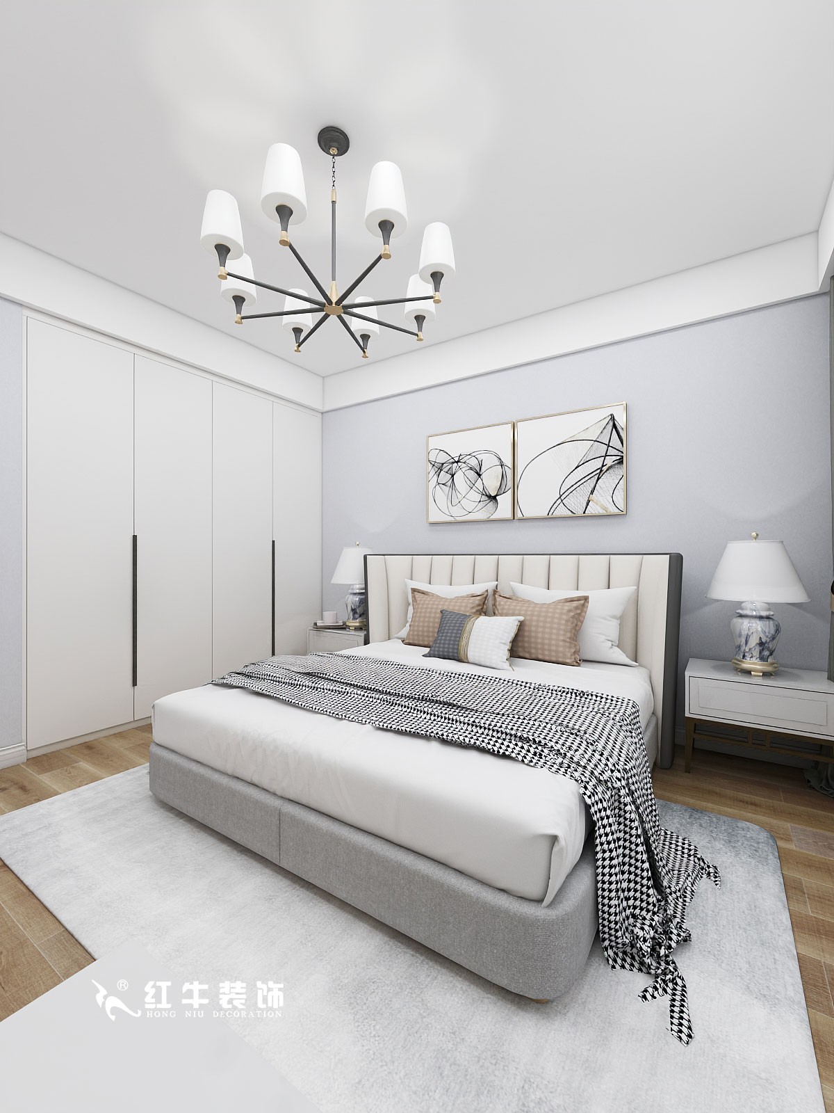 在整體明亮寬敞的空間環(huán)境下,主臥布置上選擇了舒適的軟裝配飾,打造出現(xiàn)代優(yōu)雅的居室效果。