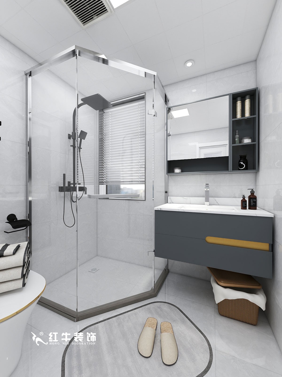 鉆石形淋浴房對(duì)于小衛(wèi)生間來(lái)說(shuō)非常適合,兩邊分別設(shè)置馬桶與洗手臺(tái)盆,空間合理,動(dòng)線流暢。