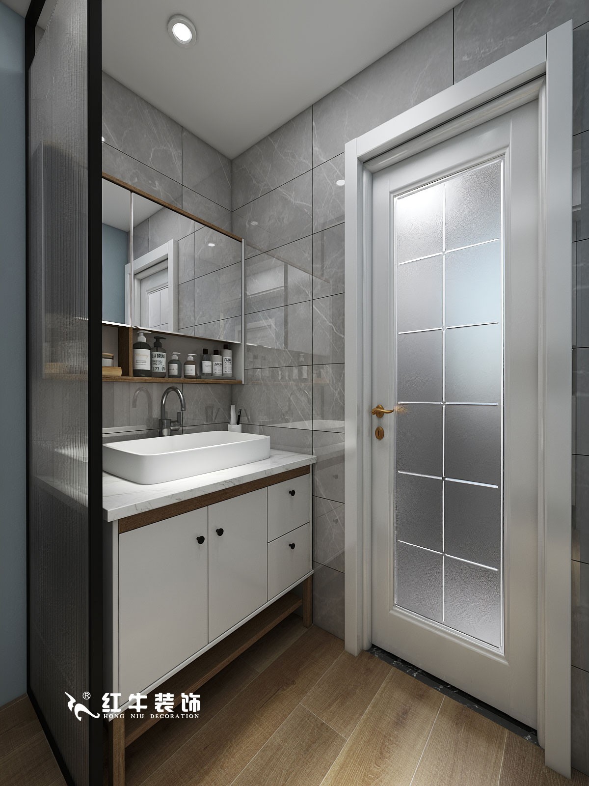 外置洗手臺(tái)設(shè)隔斷,起到了保護(hù)個(gè)人隱私的作用,而且更加鮮明地將客衛(wèi)與其它區(qū)域分隔開來(lái)。