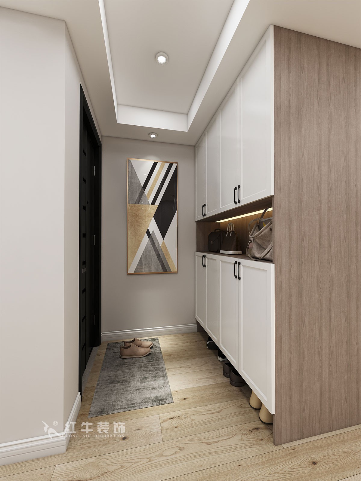 本案設計的整體風格,定位為簡約現代。戶型本身的結構比較規(guī)整,平面布置在后期做出了合理的規(guī)劃,讓空間在布局、使用上更為舒適。