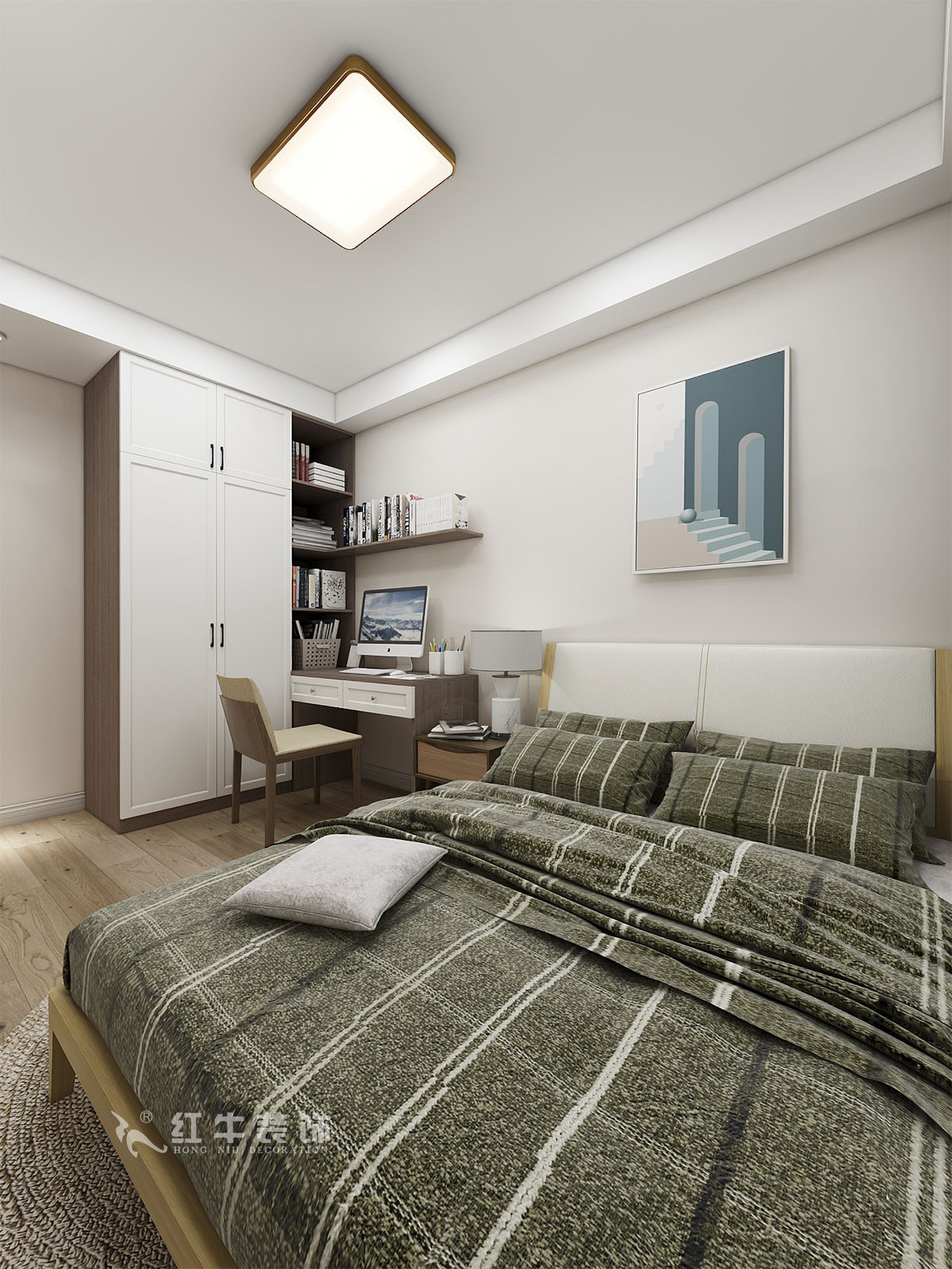 客餐廳色調清雅,休閑、隨性又不失精致,電視背景墻沒有過多的華麗修飾,給空間本身一個開拓、延展性,給居住者一個慵懶、明快的起居環(huán)境。主臥次臥,依靠家具本身的線條感,搭配寫實主義的裝飾畫,給人以休閑自在的視覺感受。書房是辦公空間,設計者在整面墻留白,搭配淺色條紋壁紙,給了空間一個視覺的開放性,心情也自然就舒緩很多。