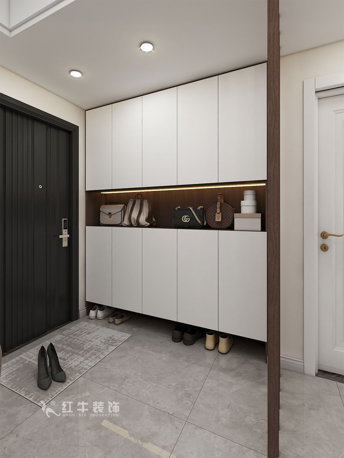 進(jìn)戶門入戶空間相對(duì)狹小,建筑設(shè)計(jì)中未預(yù)留衣帽鞋柜的位置。