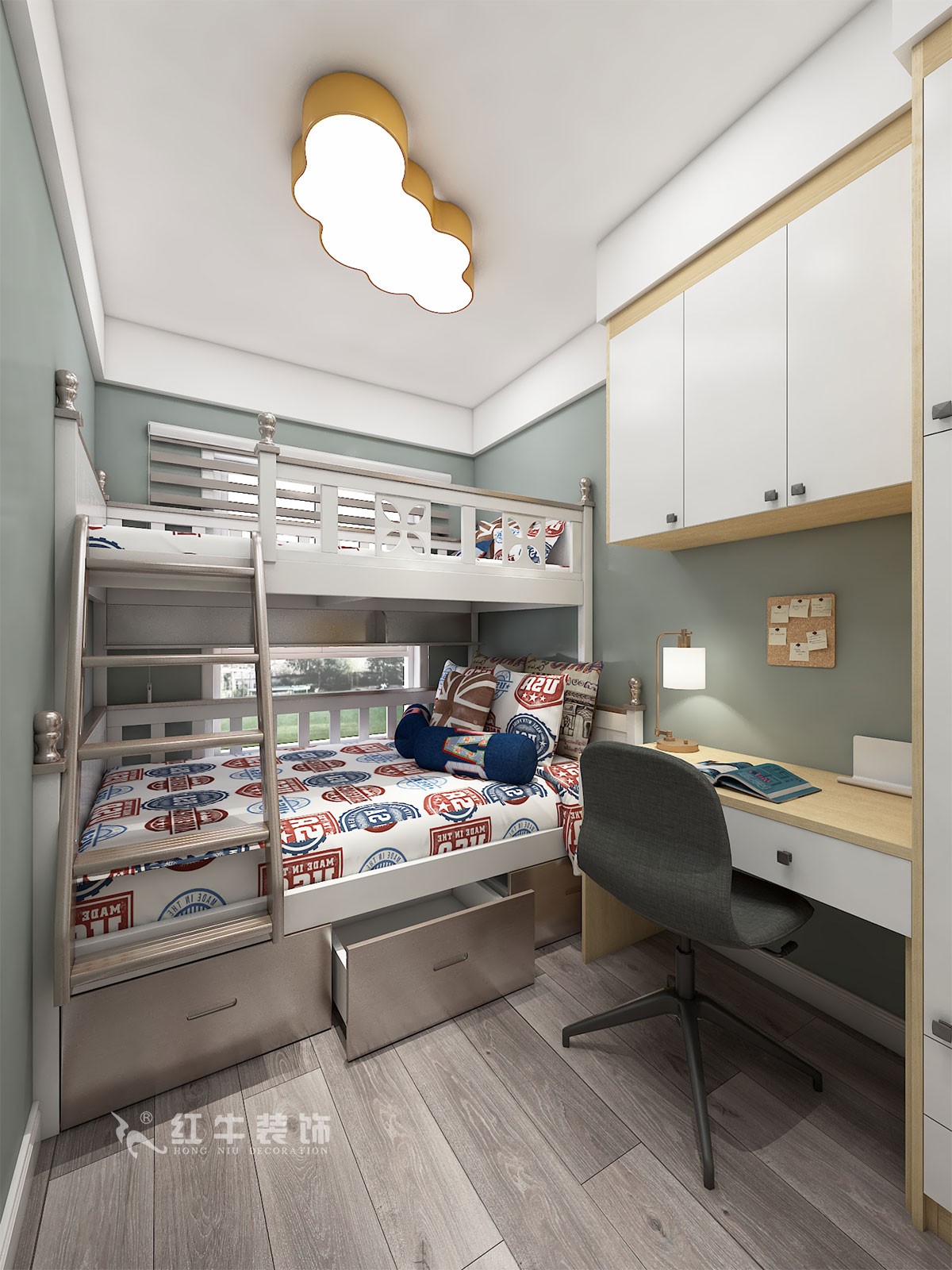 本案設(shè)計業(yè)主兩代人居住,小夫妻帶小孩居住,客廳入戶掏墻做嵌入式鞋柜,小孩房間雙層床,方便日后家里老人過來臨時居住。寫字桌跟衣柜定制,有效利用空間,增加收納。全屋木色加白門板搭配,顯得溫馨明亮。