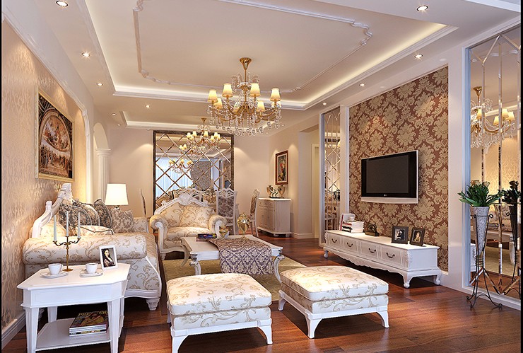 歐式的居室有的不只是豪華大氣,更多的是愜意和浪漫,暖色的基調(diào)配合純白的家私擁有無(wú)盡的舒適感。作為簡(jiǎn)歐來(lái)說(shuō),處處曲美背景的走邊線(xiàn)條,無(wú)需花哨繁瑣。點(diǎn)線(xiàn)面稍加一些弧形更貼近于自然,并融入了比如羅馬柱,拱門(mén)等非常有代表性的歐式元素,軟裝配飾的色調(diào),與背景的硬裝相互共鳴,映入大氣的柔美。背景墻的大塊拼花墻紙,大氣凜然,凸顯低調(diào)的奢華。餐廳邊整面的車(chē)邊銀鏡增加了采光的同時(shí),又將戶(hù)型空間得到了無(wú)限的延伸,點(diǎn)點(diǎn)的精致,源于對(duì)細(xì)節(jié)的處處考量,歐式吊頂金燦燦的光芒,灑滿(mǎn)家的每個(gè)角落。沙發(fā)背景的造型與羅馬柱拱形的門(mén)廊,相互映襯,統(tǒng)一的視覺(jué)感讓設(shè)計(jì)空間協(xié)同舒適。