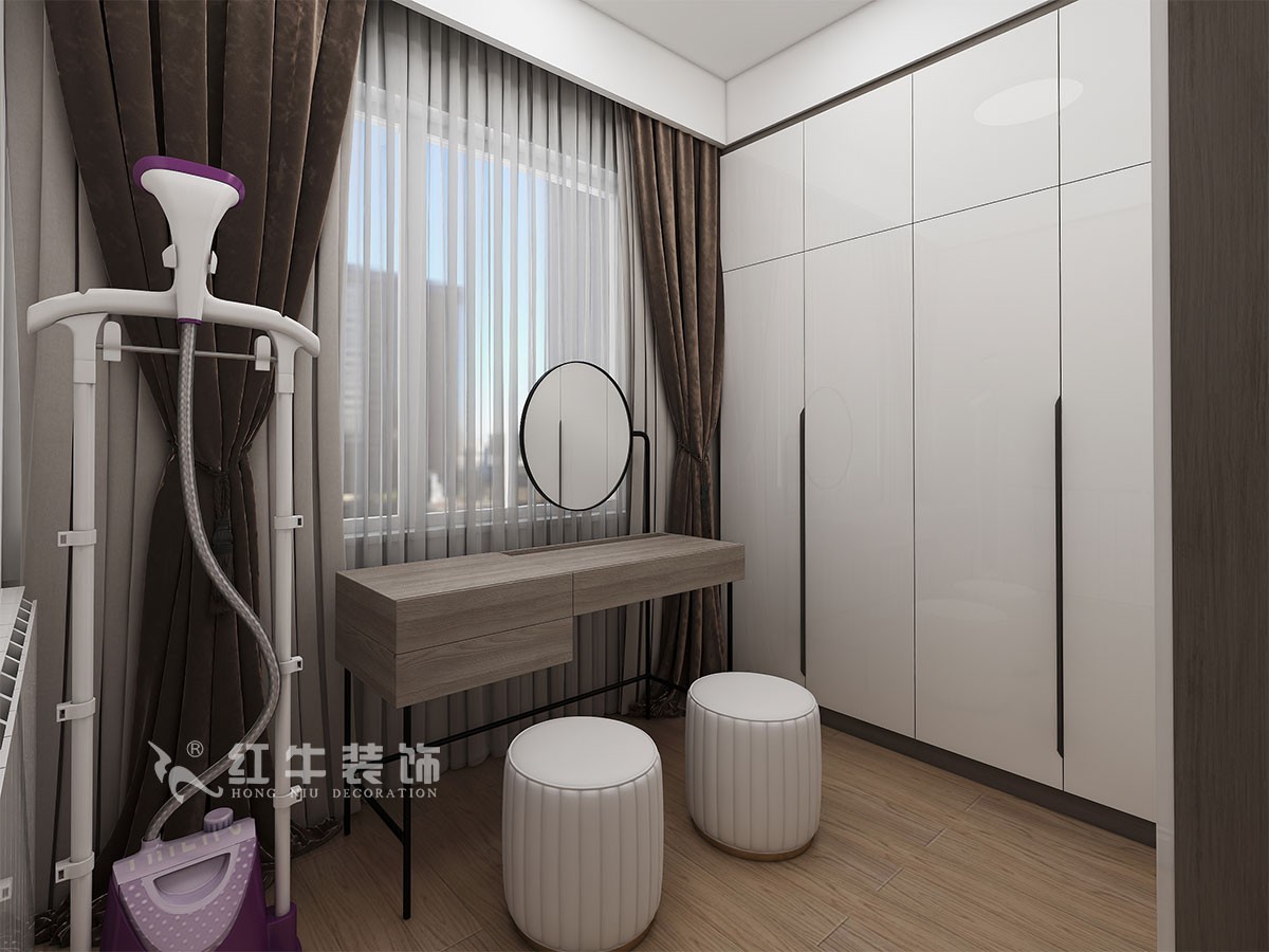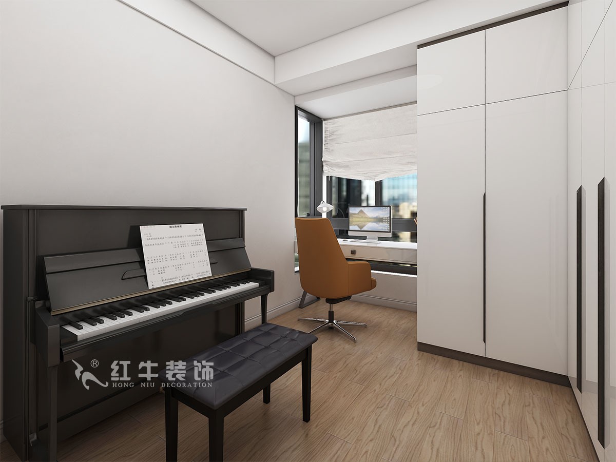戶型本身的結(jié)構(gòu)比較規(guī)整,結(jié)構(gòu)上幾乎沒有做什么改動(dòng),客戶不喜歡多余的裝飾,整體方案簡(jiǎn)潔大方??蛻粜枰粋€(gè)大的衣帽間,也是母女倆的化妝間。書房房臨窗處書桌,給了本就不大的空間擺放鋼琴,這樣視覺更開放,心情也自然就舒緩很多。
