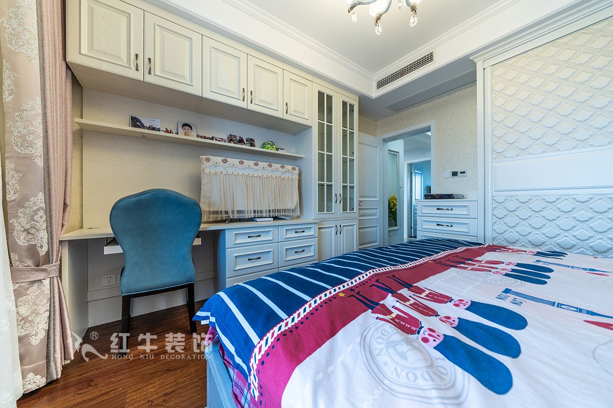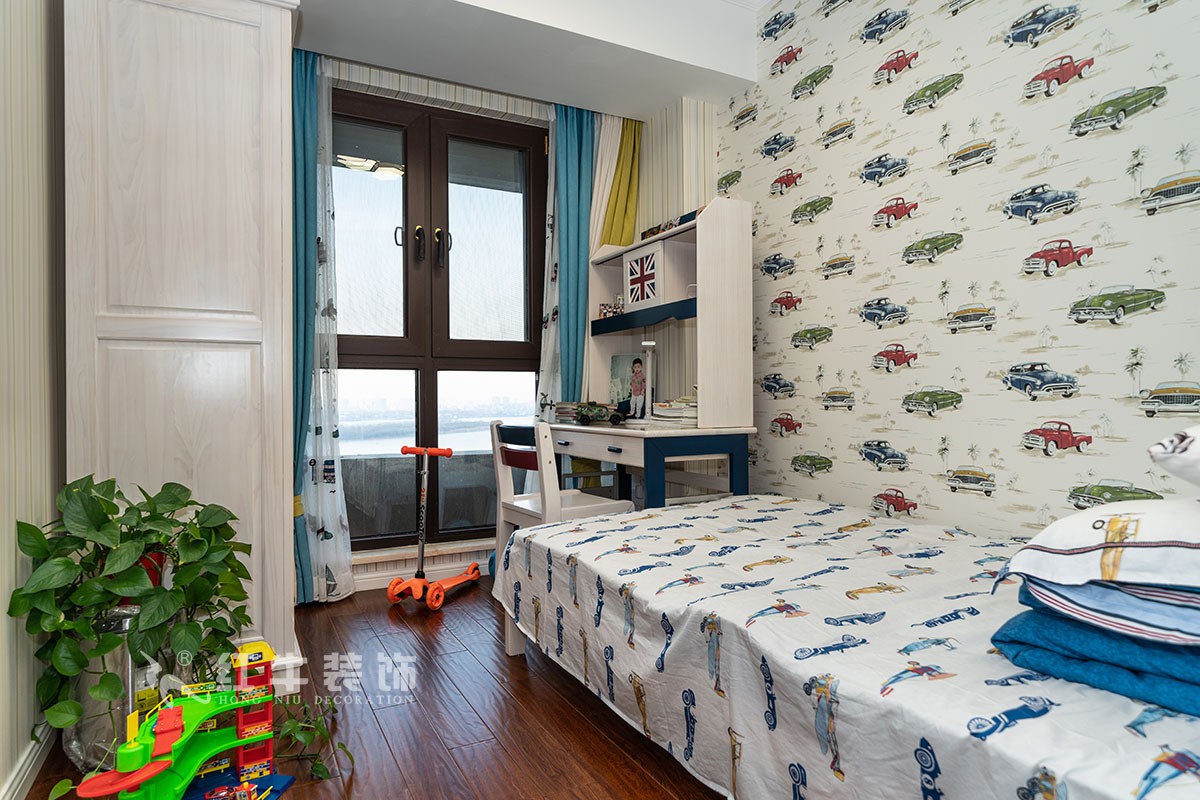 整體風(fēng)格簡約,白色和木紋色營造出溫馨的生活氣息,臥室設(shè)計(jì)了組合柜,既有學(xué)習(xí)的區(qū)域同時(shí)也兼顧了休閑空間。