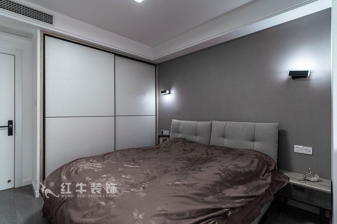 主臥任然走極簡的線條感,搭配黑色壁燈,給人以休閑自在的視覺感受,心情也自然就舒緩很多。
