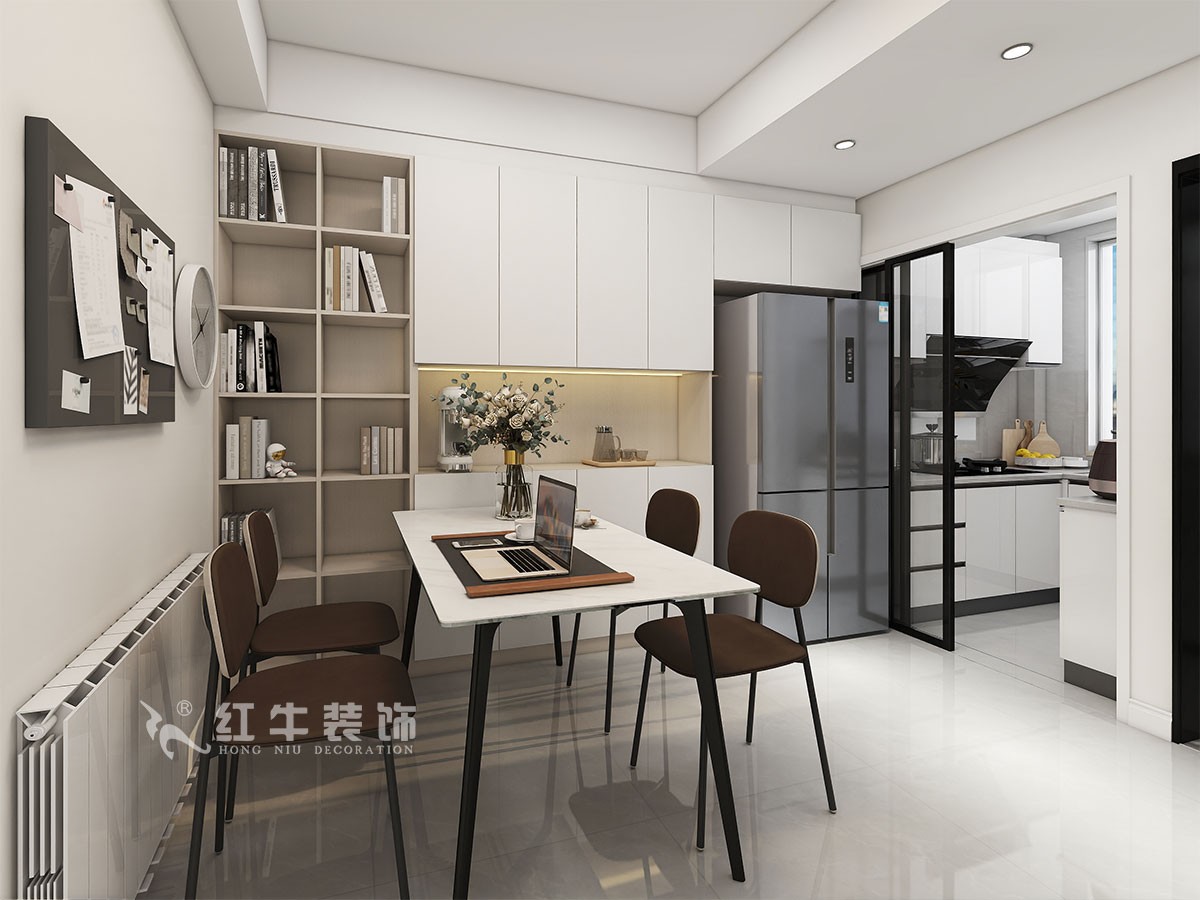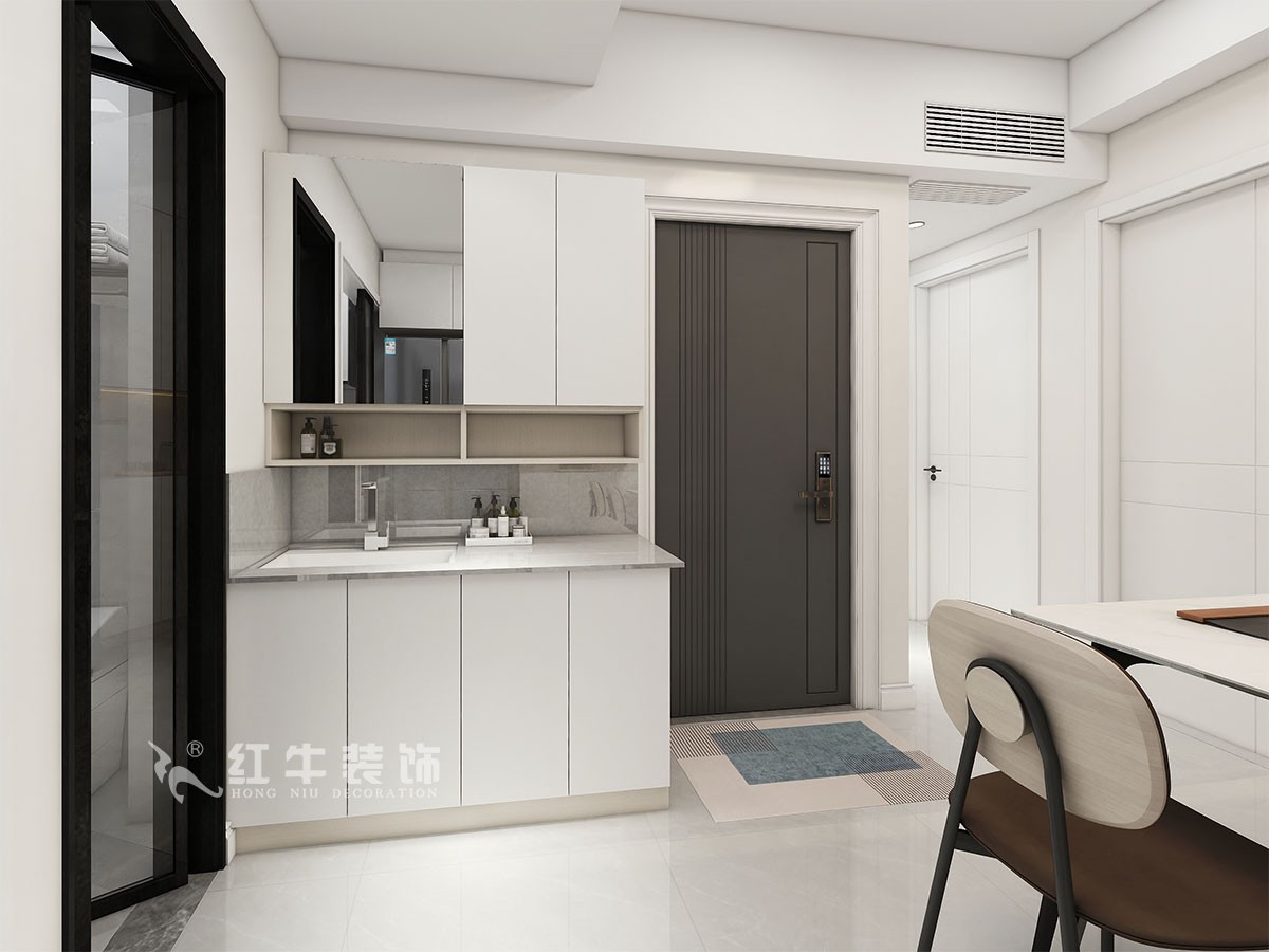 本案為城市中心學區(qū)房,一家三口居住,小朋友即將成為小學生,業(yè)主夫妻倆平時工作比較忙,經(jīng)溝通客廳只保留就餐兼顧辦公學習的空間。因廚房面積偏小,冰箱我們安排到了餐廳,衛(wèi)生間洗漱臺盆柜,也和進戶鞋柜結合設計。兩個臥室的面積比較大,我們在基礎的衣柜儲物上,又增加了其他儲物柜。
