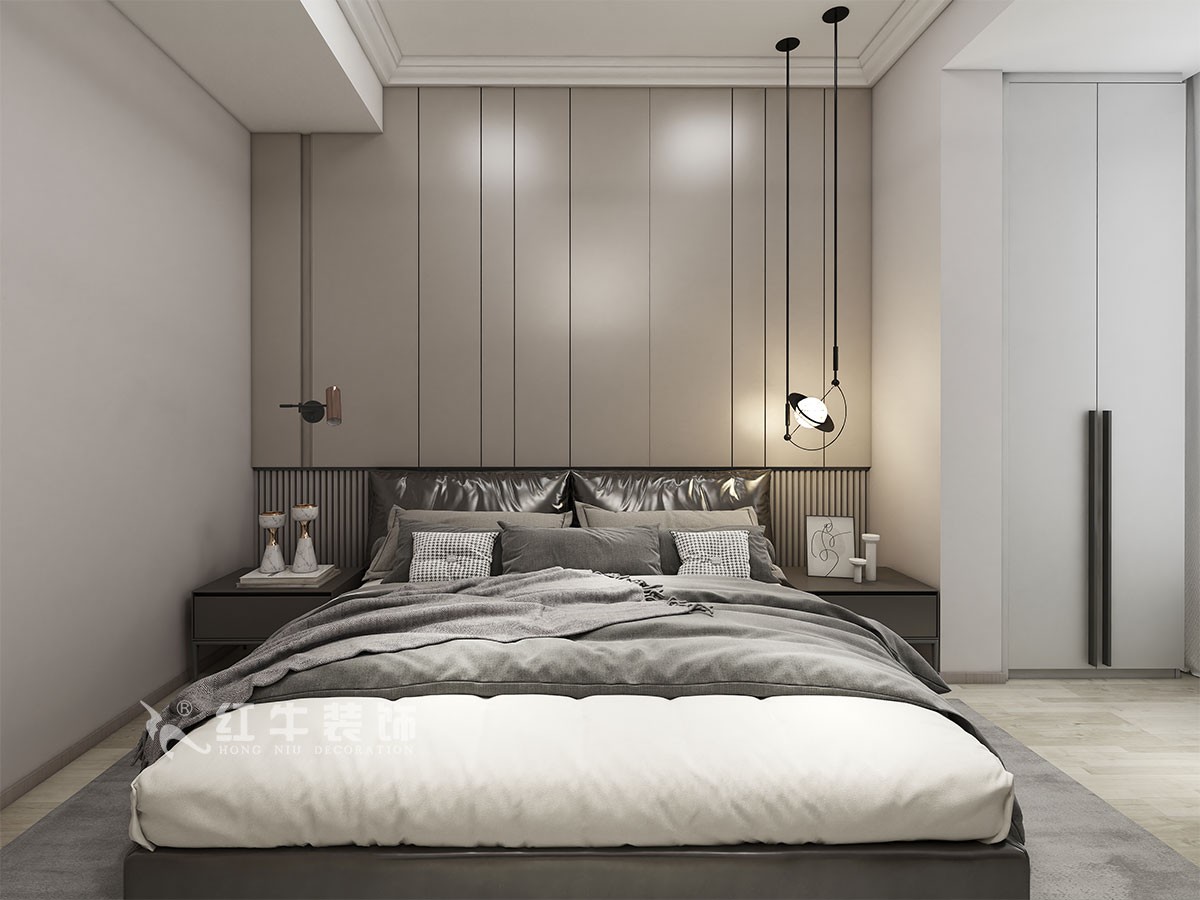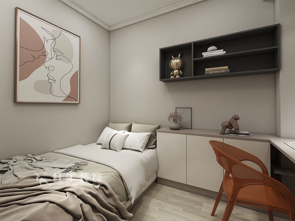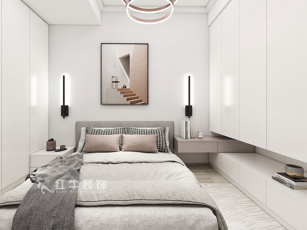 此案主要是一家三口居住,在舒適度上要求比較高,臥室是整套房子中最私人也是最體現出溫馨休閑感的空間,在設計時體現出靜謐舒適的感覺,并且與其他空間明顯的區(qū)別,把原本臥室用透光的移門隔斷和餐廳隔開,這樣餐廳的采光更好,區(qū)域劃分明顯,動靜分離。吊頂簡潔大氣,配以輕現代家具,完美闡釋了簡約風格。整體現代簡約風格的設計,搭配上顯眼的綠色植物讓整個空間呈現出一種生機勃勃的自然美。