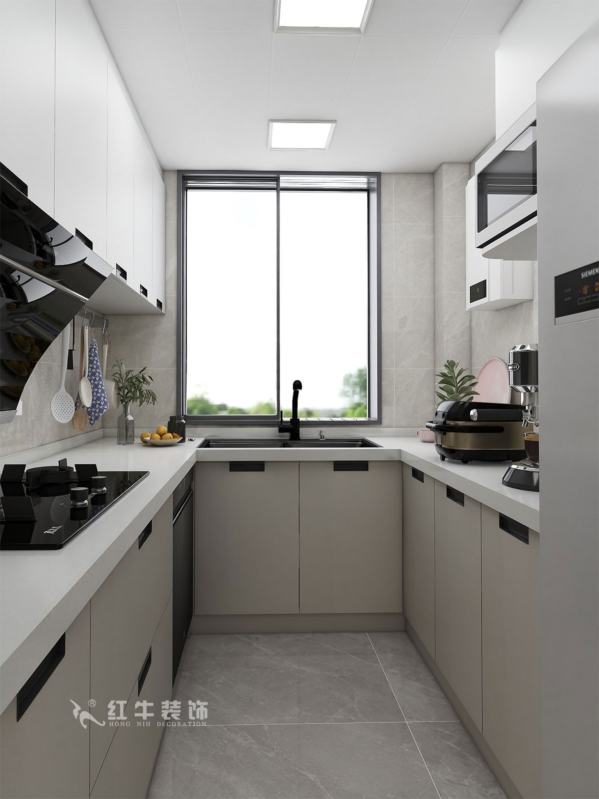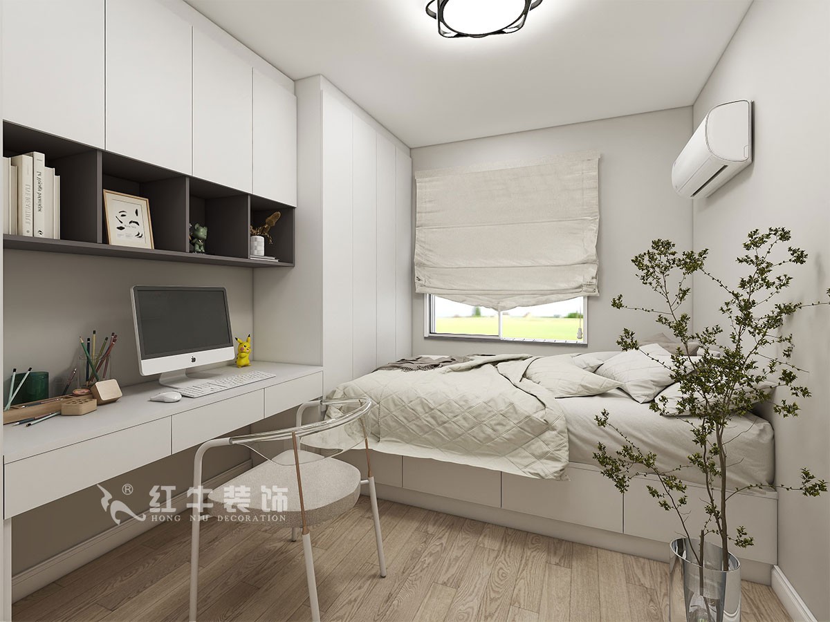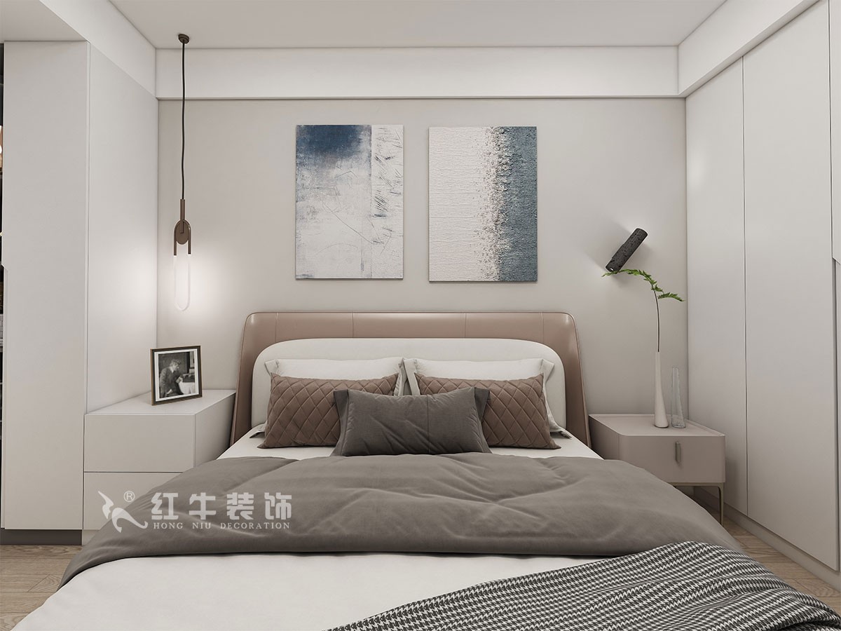 此案主要是婚房居住,在舒適度上要求比較高,臥室是整套房子中最私人也是最體現(xiàn)出溫馨休閑感的空間,在設(shè)計(jì)時(shí)體現(xiàn)出靜謐舒適的感覺(jué),并且與其他空間明顯的區(qū)別,利用衛(wèi)生間砌墻,做干濕分離,把冰箱嵌入廚房,更好的布局。這樣舒適度更好,區(qū)域劃分明顯,動(dòng)靜分離。吊頂簡(jiǎn)潔大氣,配以輕現(xiàn)代家具,完美闡釋了簡(jiǎn)約風(fēng)格。整體現(xiàn)代簡(jiǎn)約風(fēng)格的設(shè)計(jì),搭配上顯眼的綠色植物讓整個(gè)空間呈現(xiàn)出一種生機(jī)勃勃的自然美。
